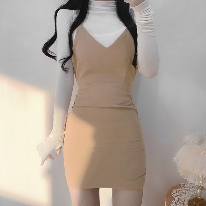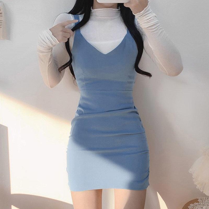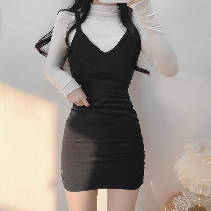 Комплект, платье, корсет, лонгслив, демисезонная юбка, в корейском стиле, с акцентом на бедрах