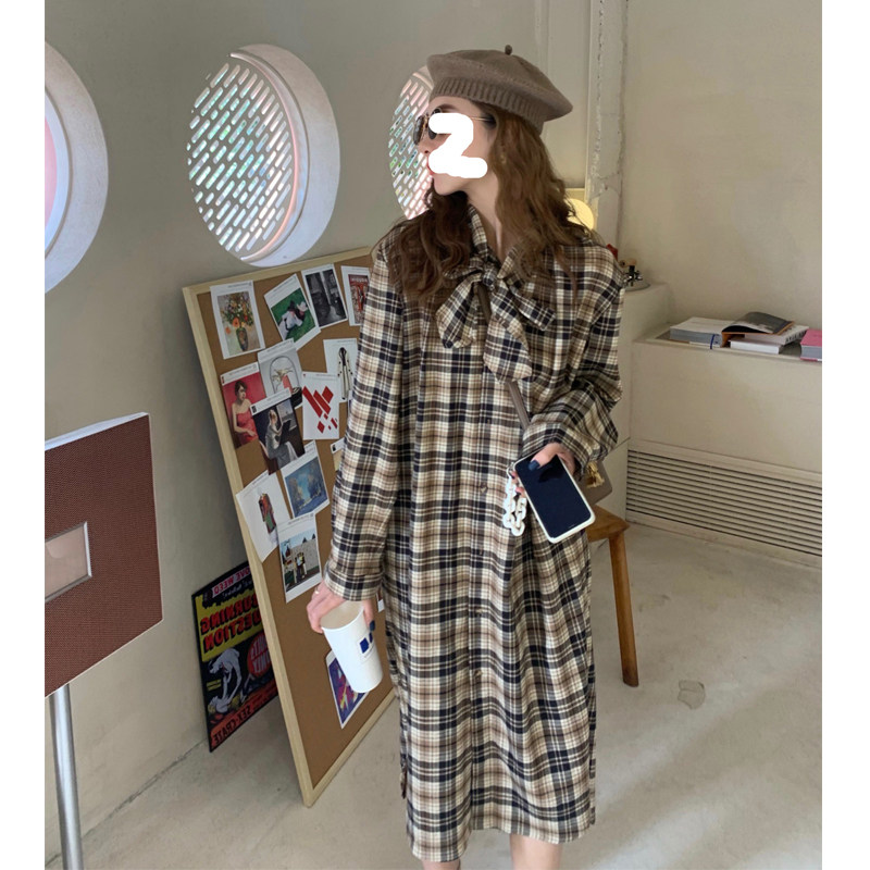 Длинный лонгслив с бантиком, ретро дизайнерское платье, длина миди, французский стиль, подходит для подростков, тренд сезона