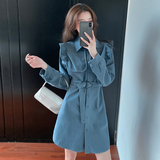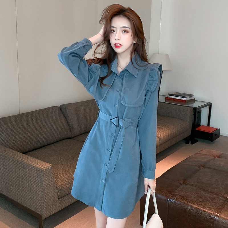 Вельветовая рубашка, платье, дизайнерский осенний длинный лонгслив, в корейском стиле, тренд сезона, средней длины