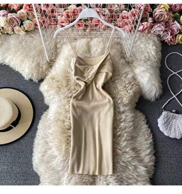 Ретро демисезонное трикотажное платье, приталенная базовая майка, коллекция 2023