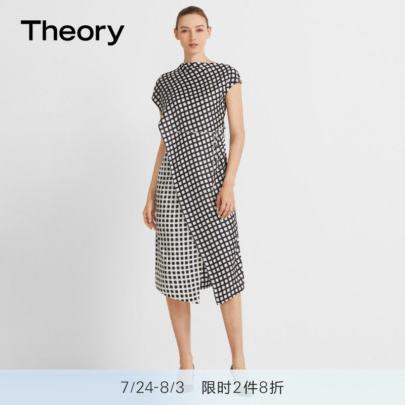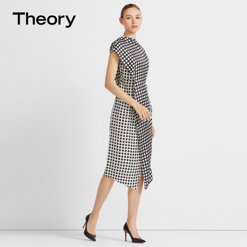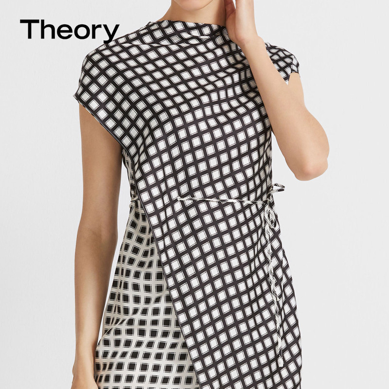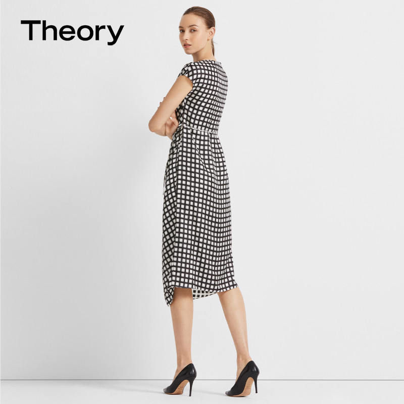 Теория женская шелковая клетчатая клетчатая клетчатая клетчатая клетчатая платья K1102609