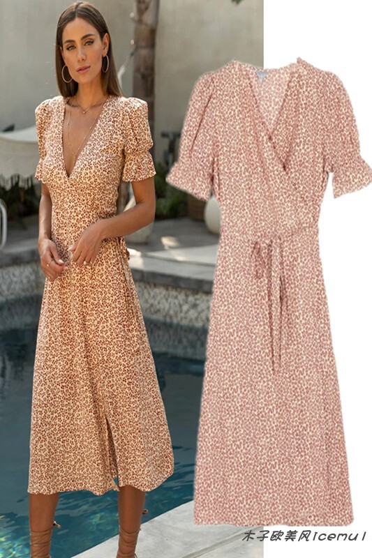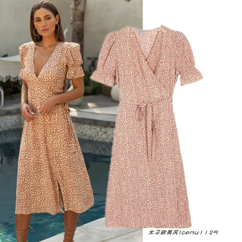 Ретро приталенный корсет, платье, французский стиль, коллекция 2021, цветочный принт, V-образный вырез, рукава фонарики, с рукавом