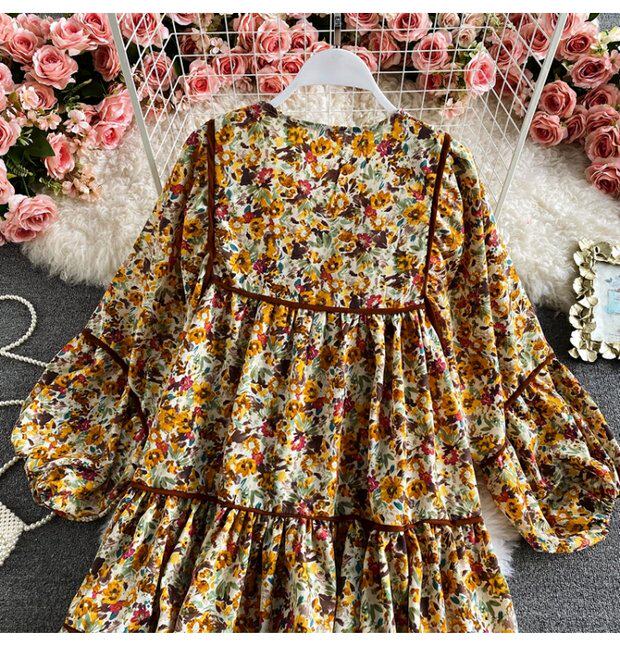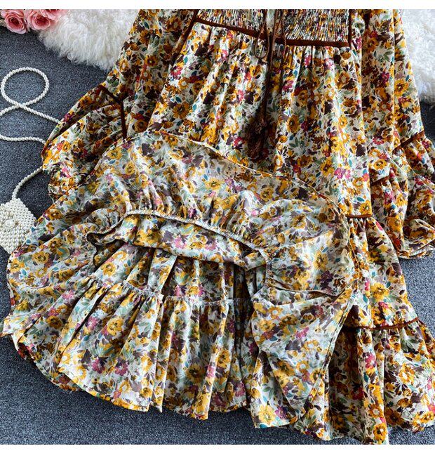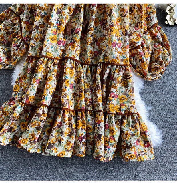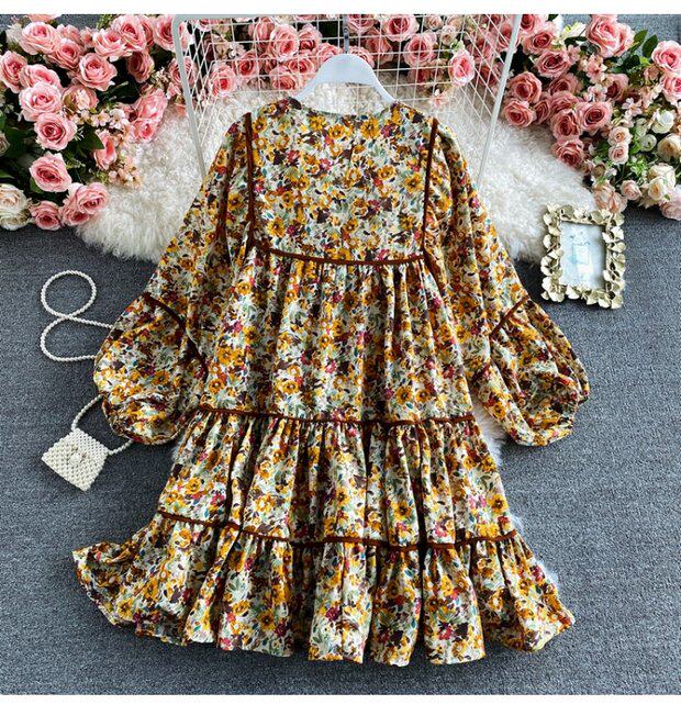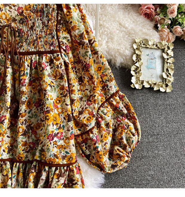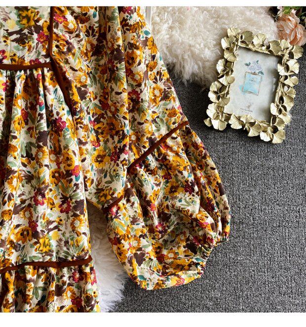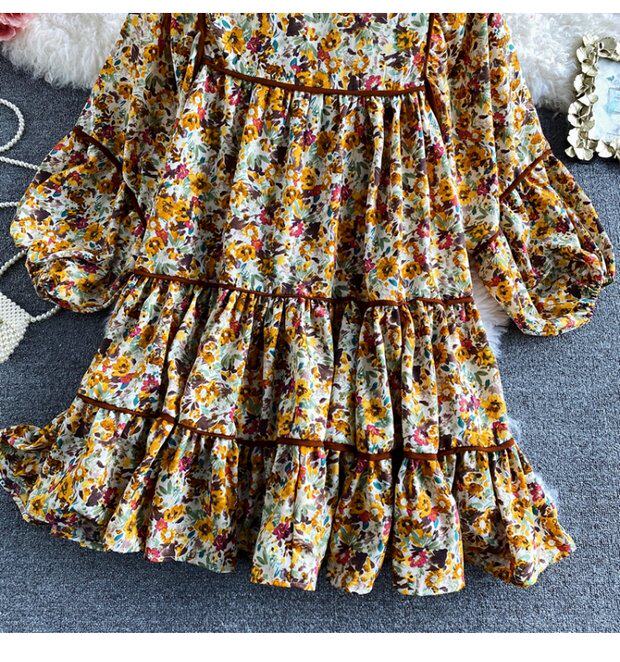 Платье, весенняя кукла, юбка, свободный крой, квадратный вырез, в цветочек, тренд сезона, по фигуре