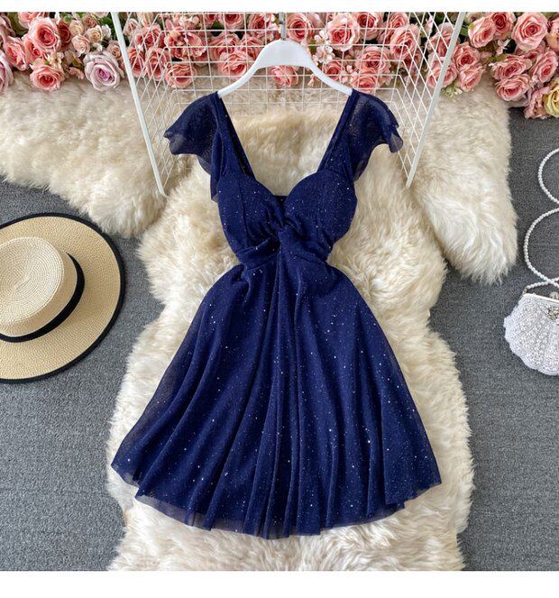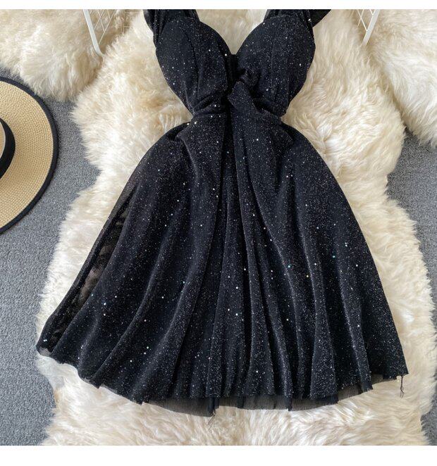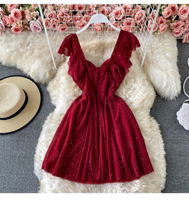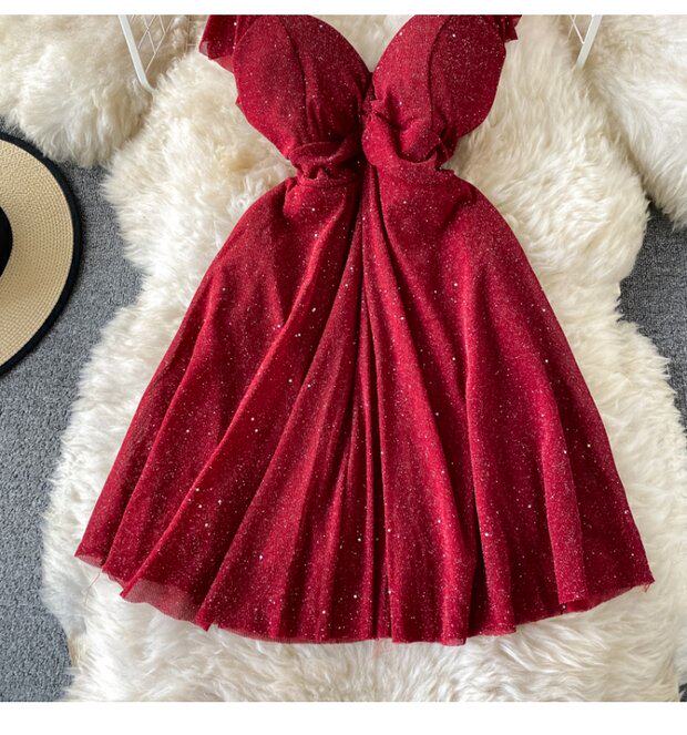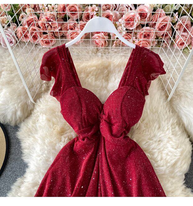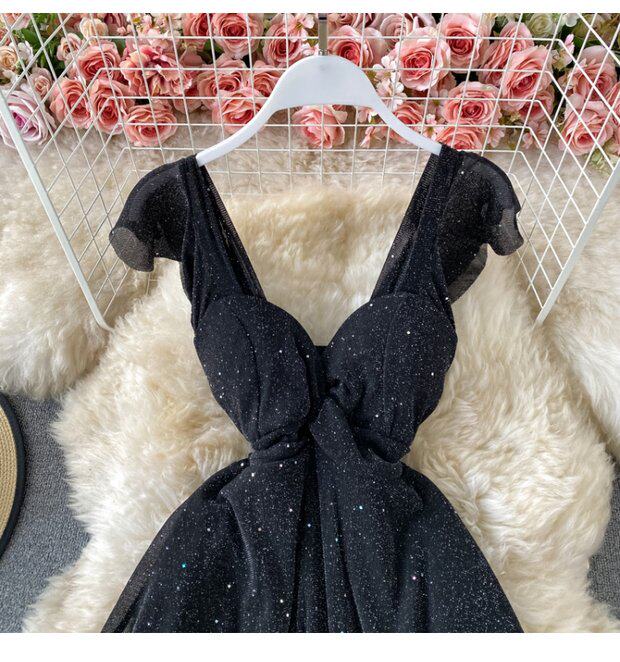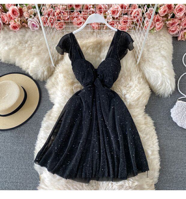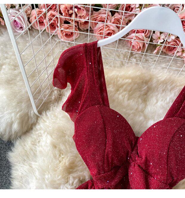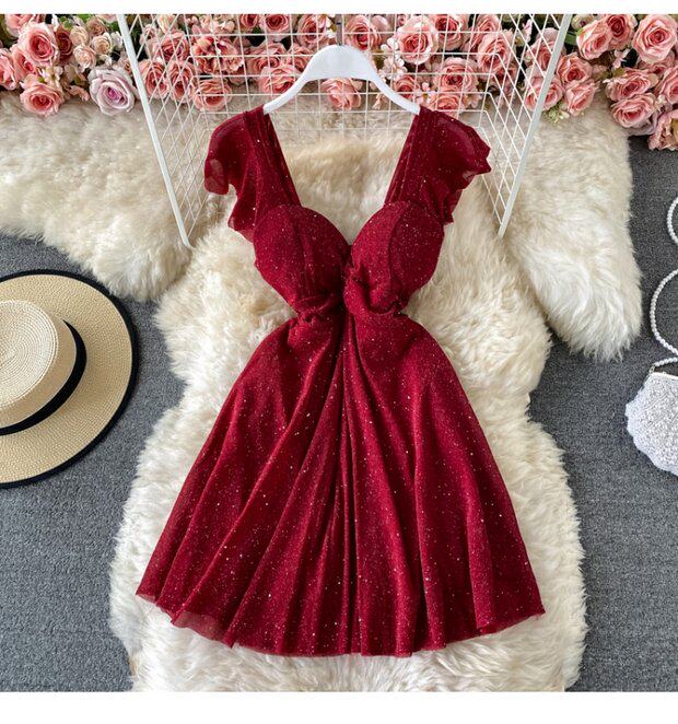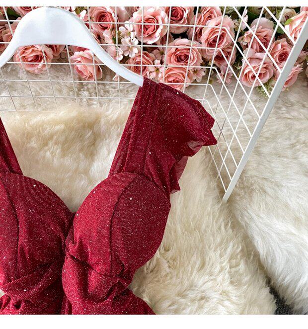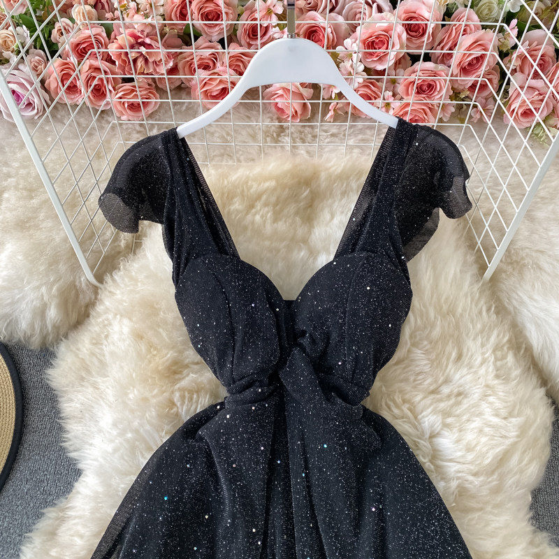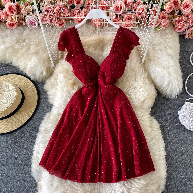 Летний сексуальный приталенный корсет, блестки для ногтей, платье, мини-юбка, V-образный вырез, А-силуэт, короткий рукав