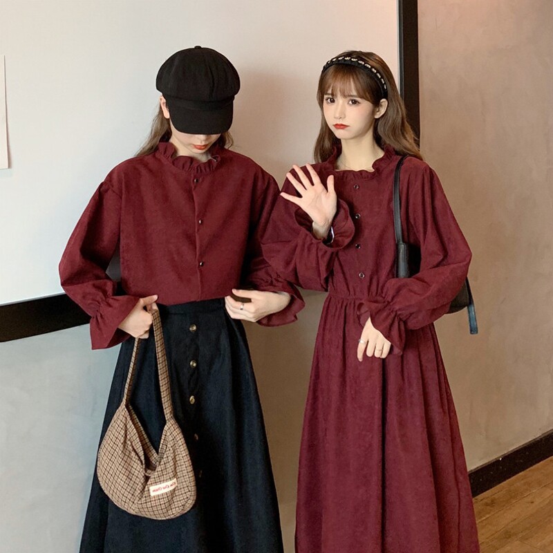 Красный комплект, ретро платье, длинная юбка, французский стиль