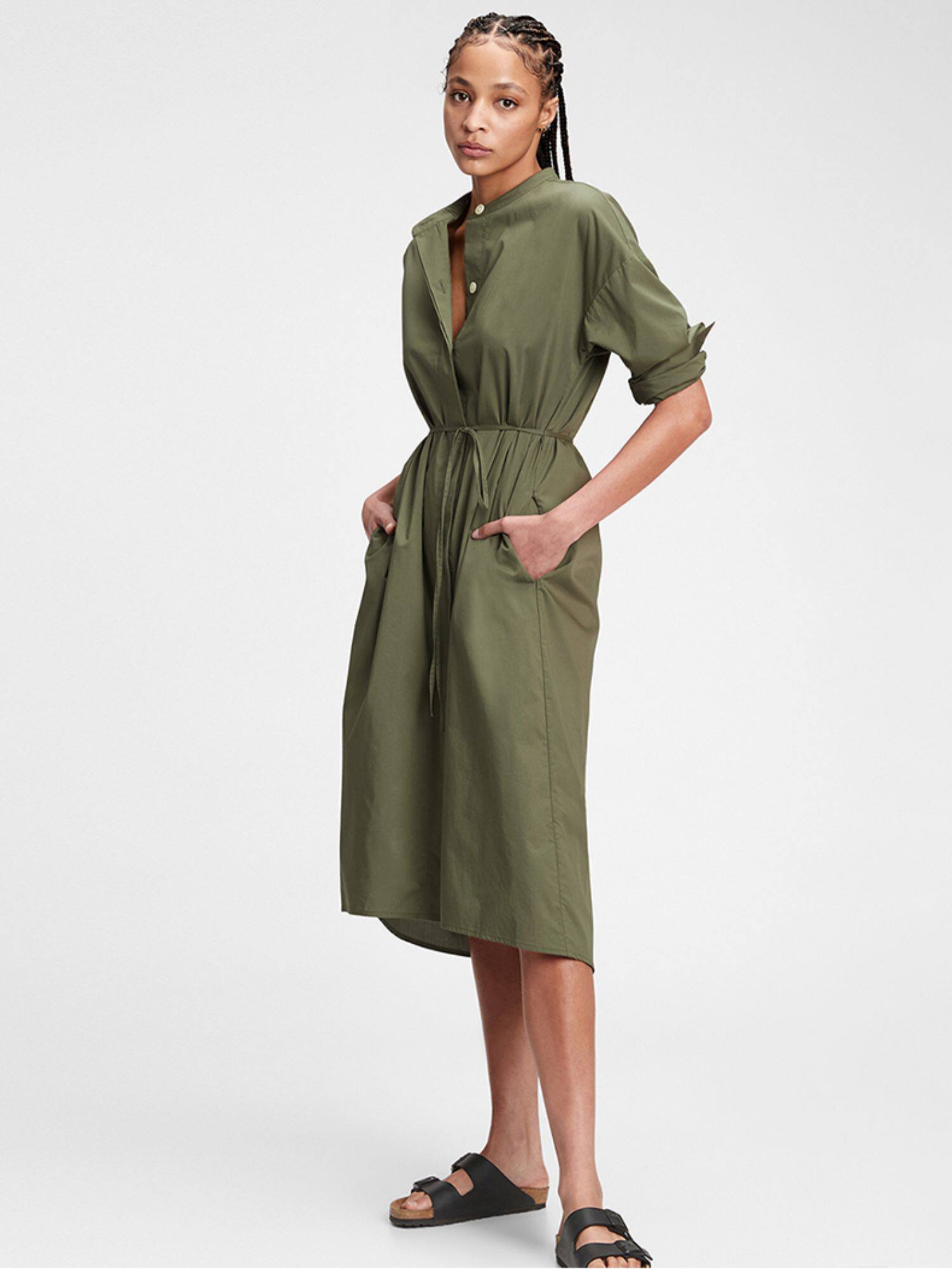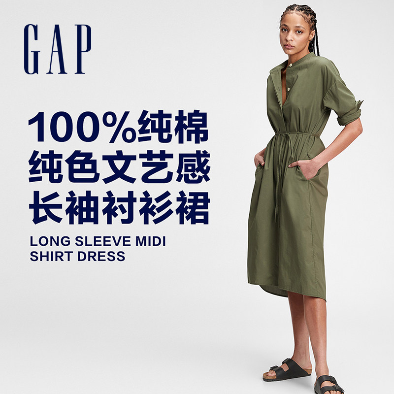 Gap Хлопковое осеннее свободное платье, длинная рубашка, средней длины