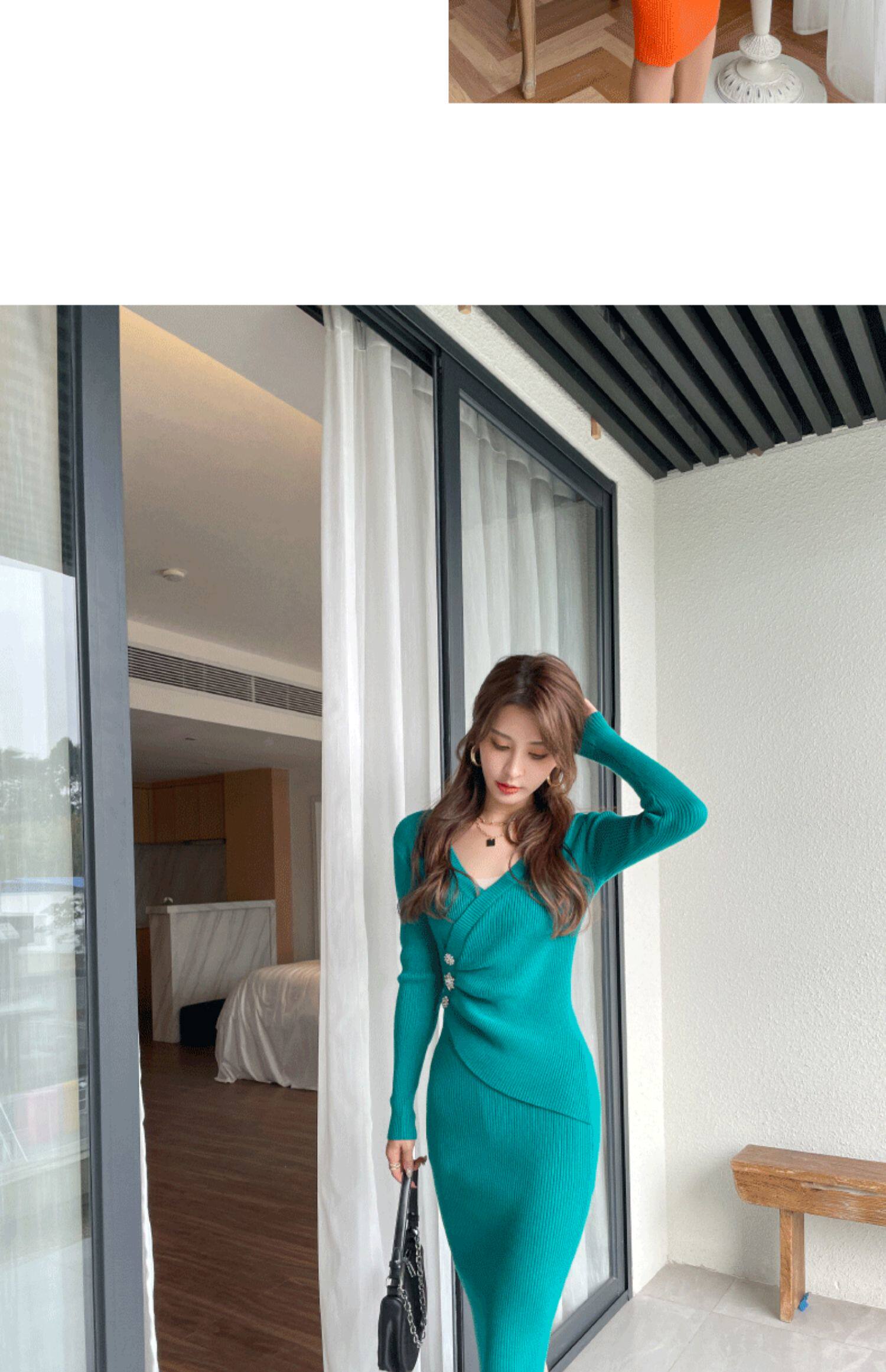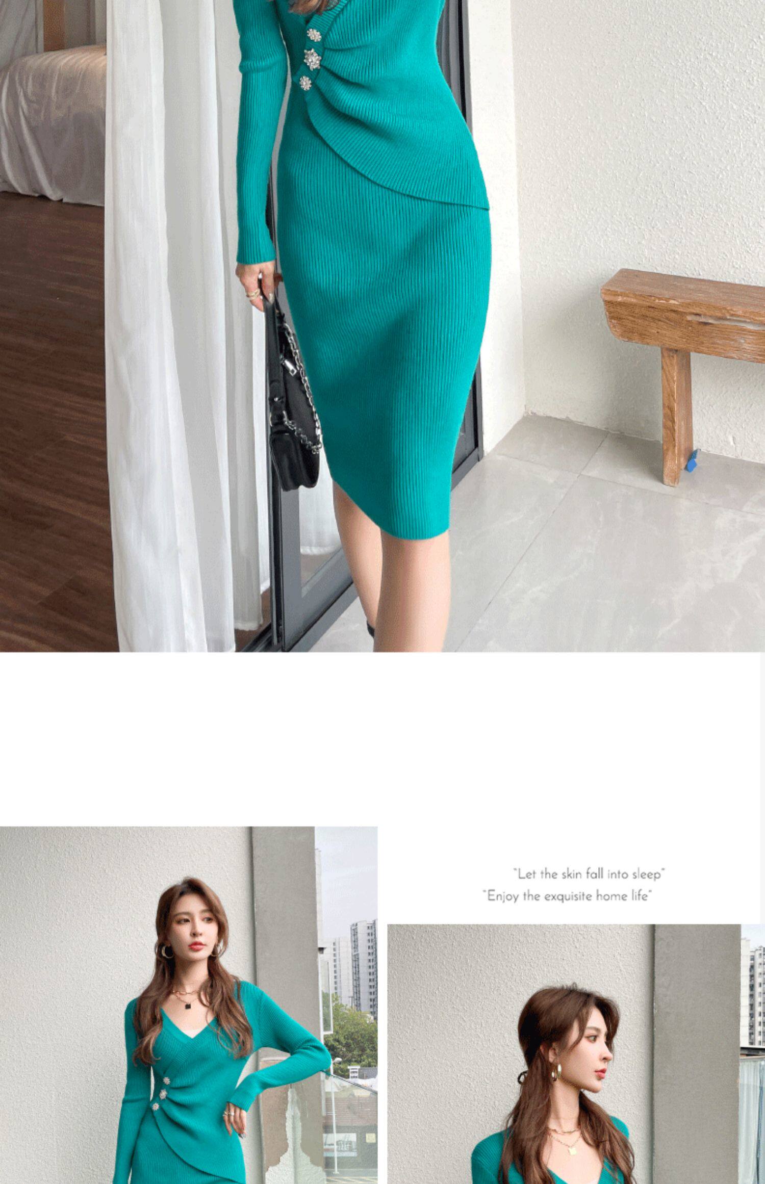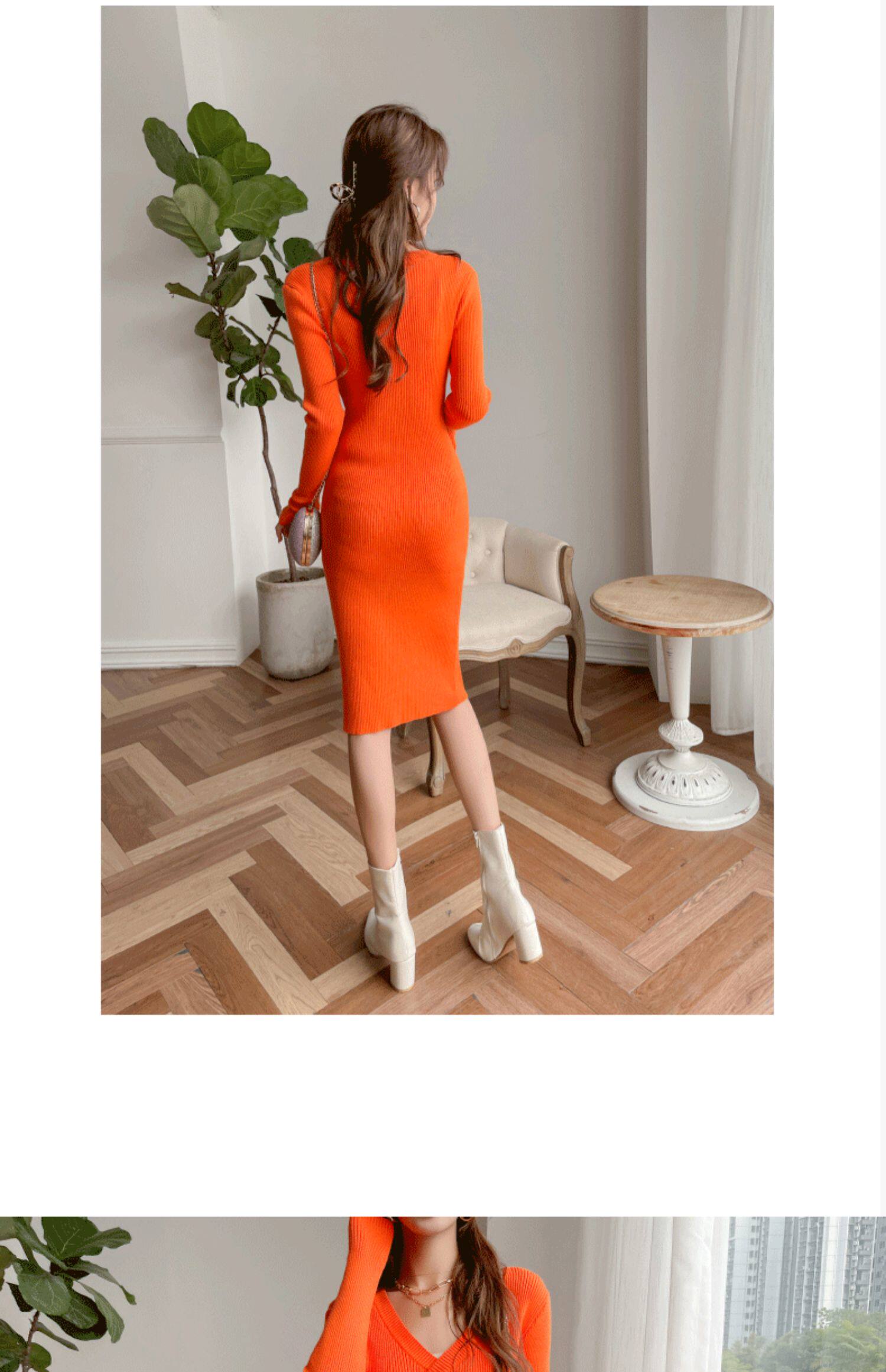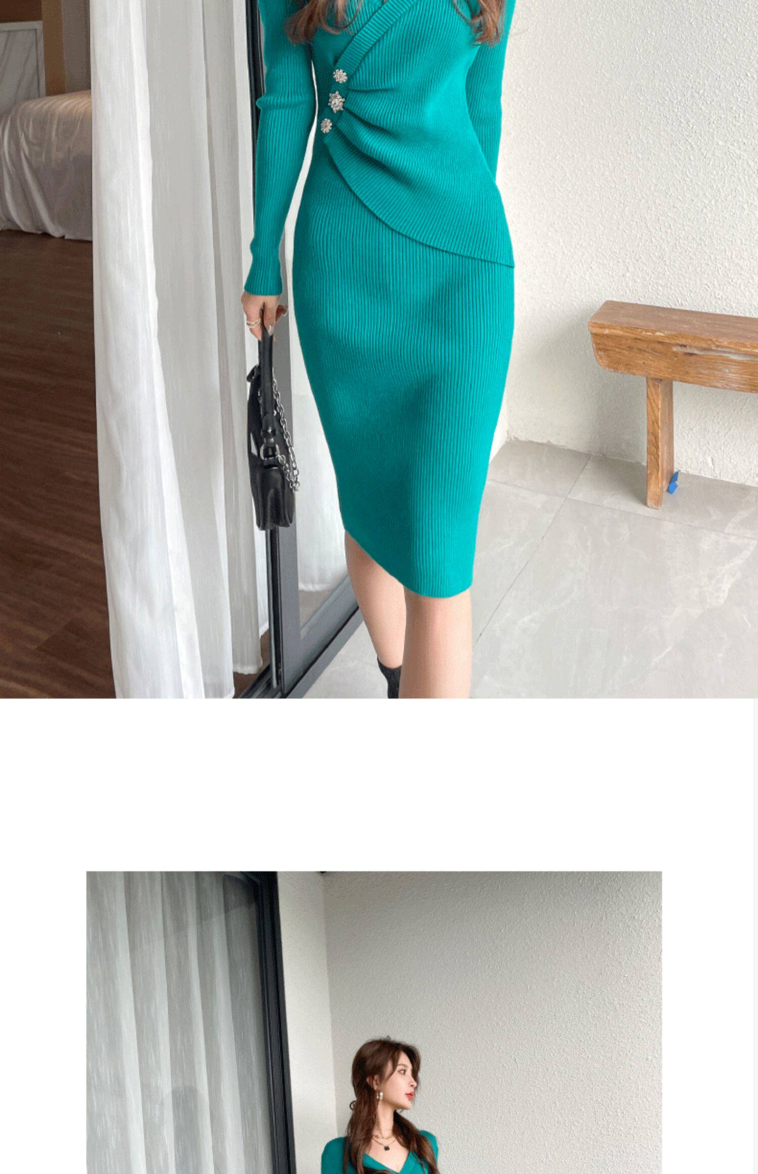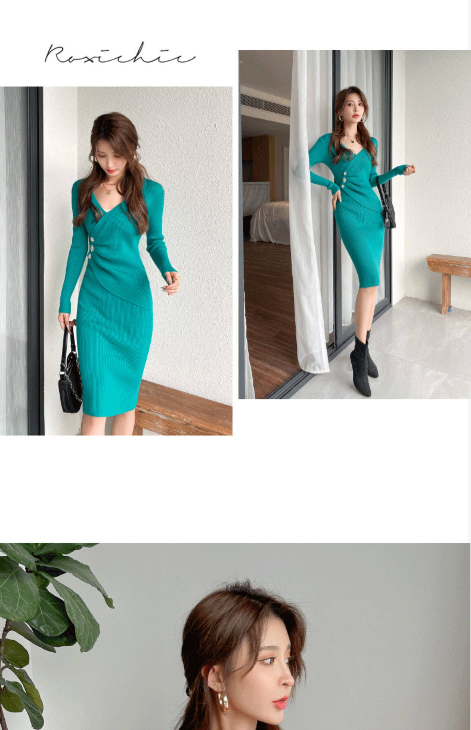 Трикотажное платье, ретро приталенный корсет, базовое шерстяное платье, коллекция 2023, городской стиль, французский ретро стиль, облегающий крой, с акцентом на бедрах
