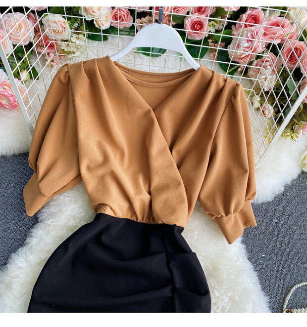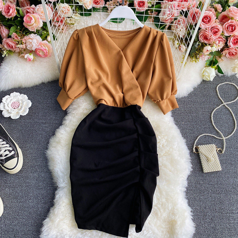 Приталенный дизайнерский корсет, платье с коротким рукавом, V-образный вырез, тренд сезона, короткий рукав