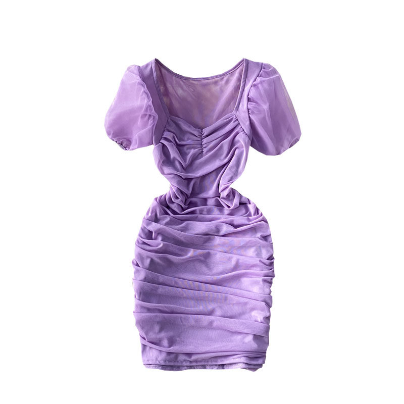 Платье, юбка, летняя одежда, приталенная мини-юбка, французский стиль, квадратный вырез, рукава фонарики, с акцентом на бедрах