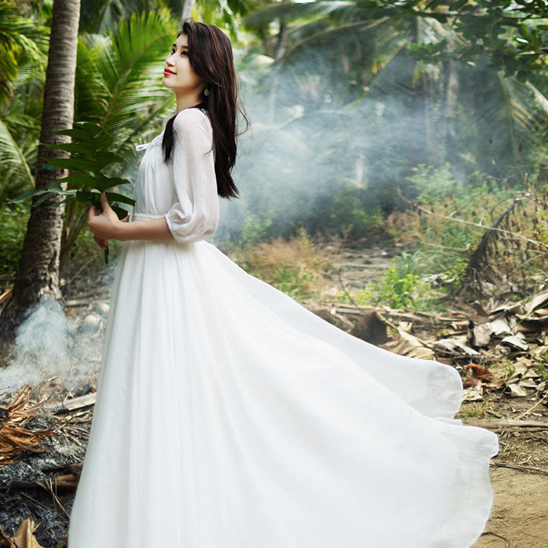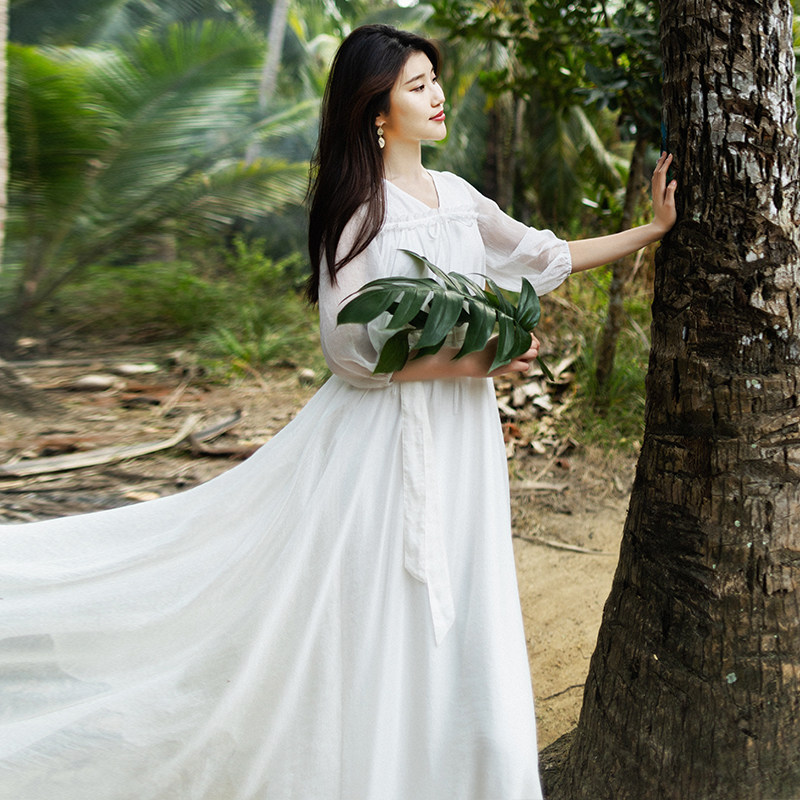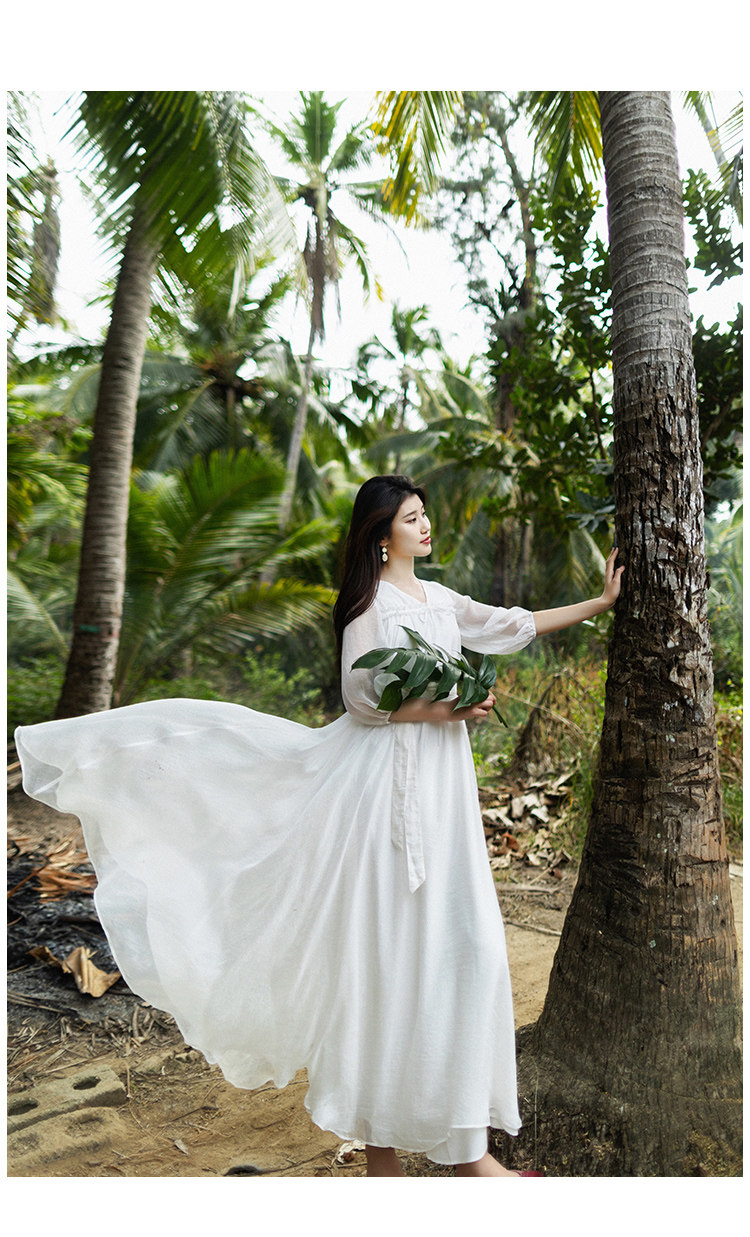 Весеннее белое длинное платье, приталенный корсет, длинная юбка, из хлопка и льна, 2021 года, городской стиль, яркий броский стиль
