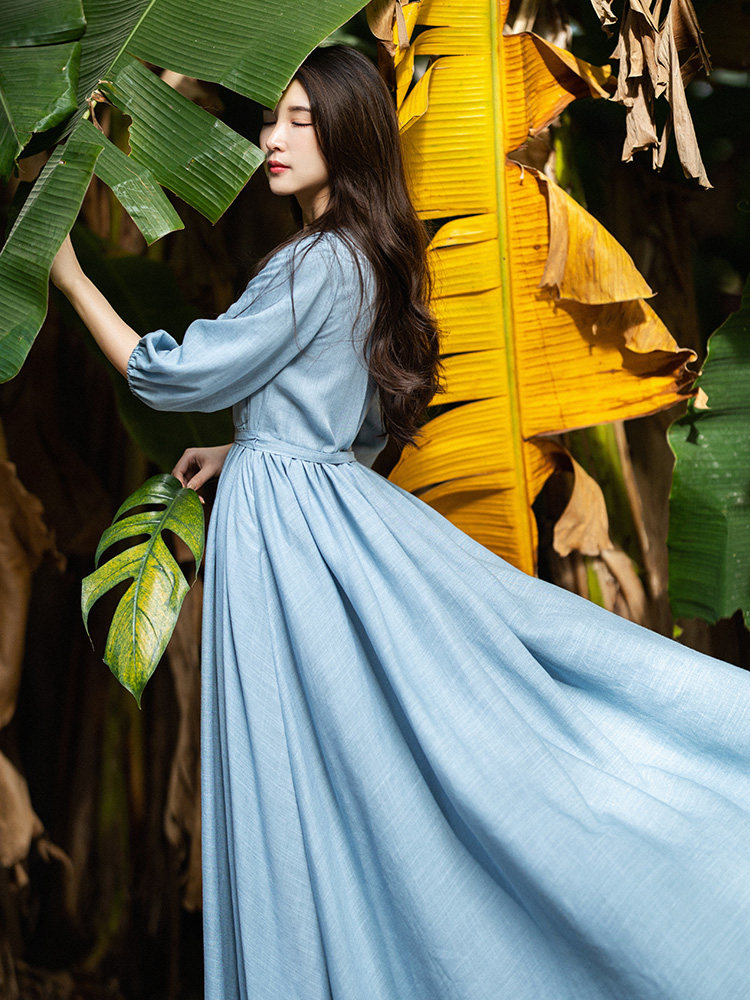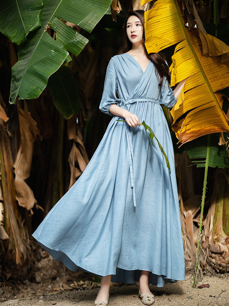 Ханьфу, весеннее платье, приталенная длинная юбка, из хлопка и льна, оверсайз, 2023, городской стиль, высокая талия