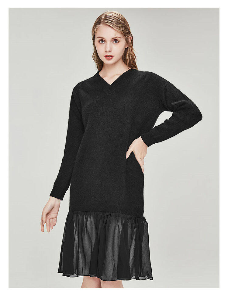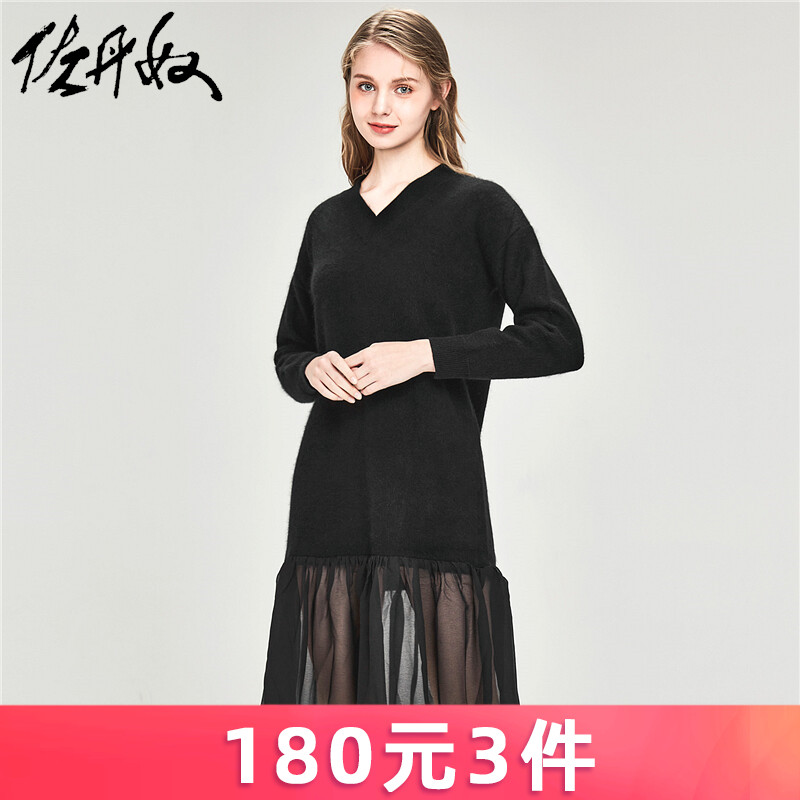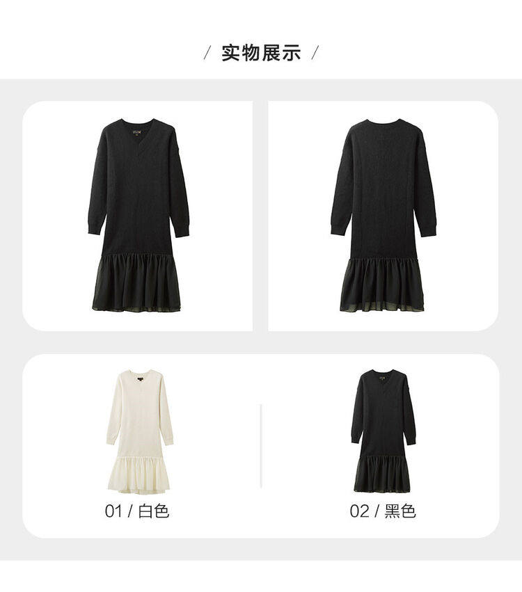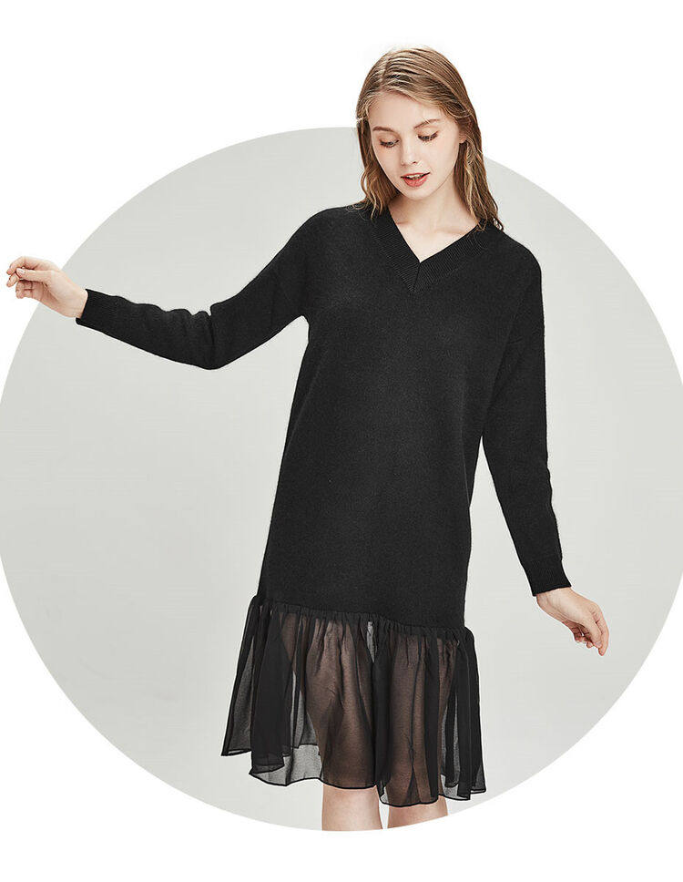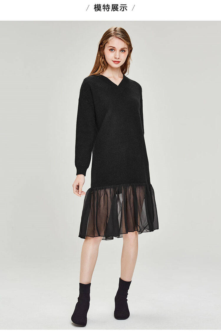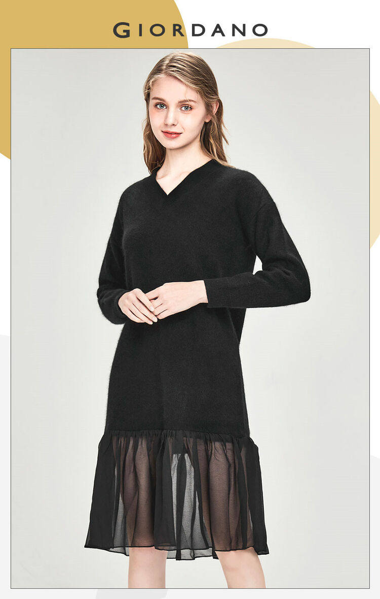 佐丹奴 Длинная дизайнерская юбка, шифоновое трикотажное платье, средней длины, V-образный вырез