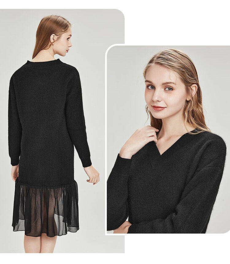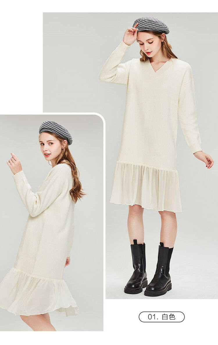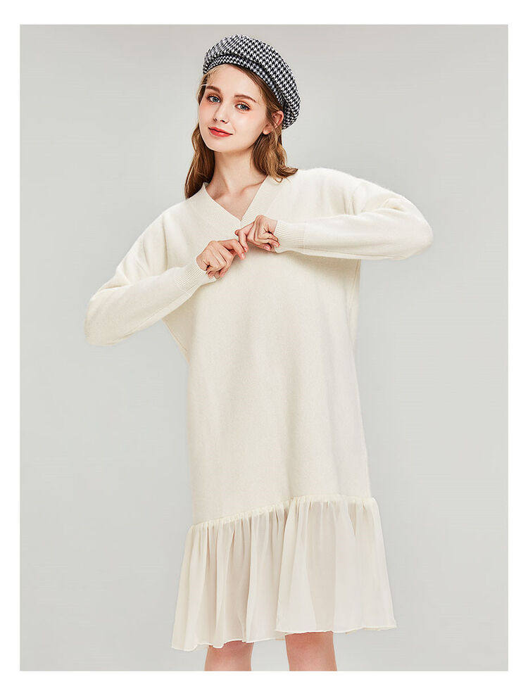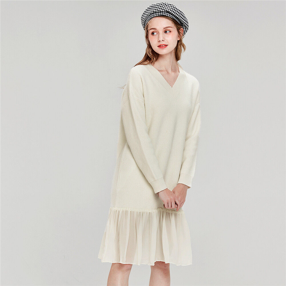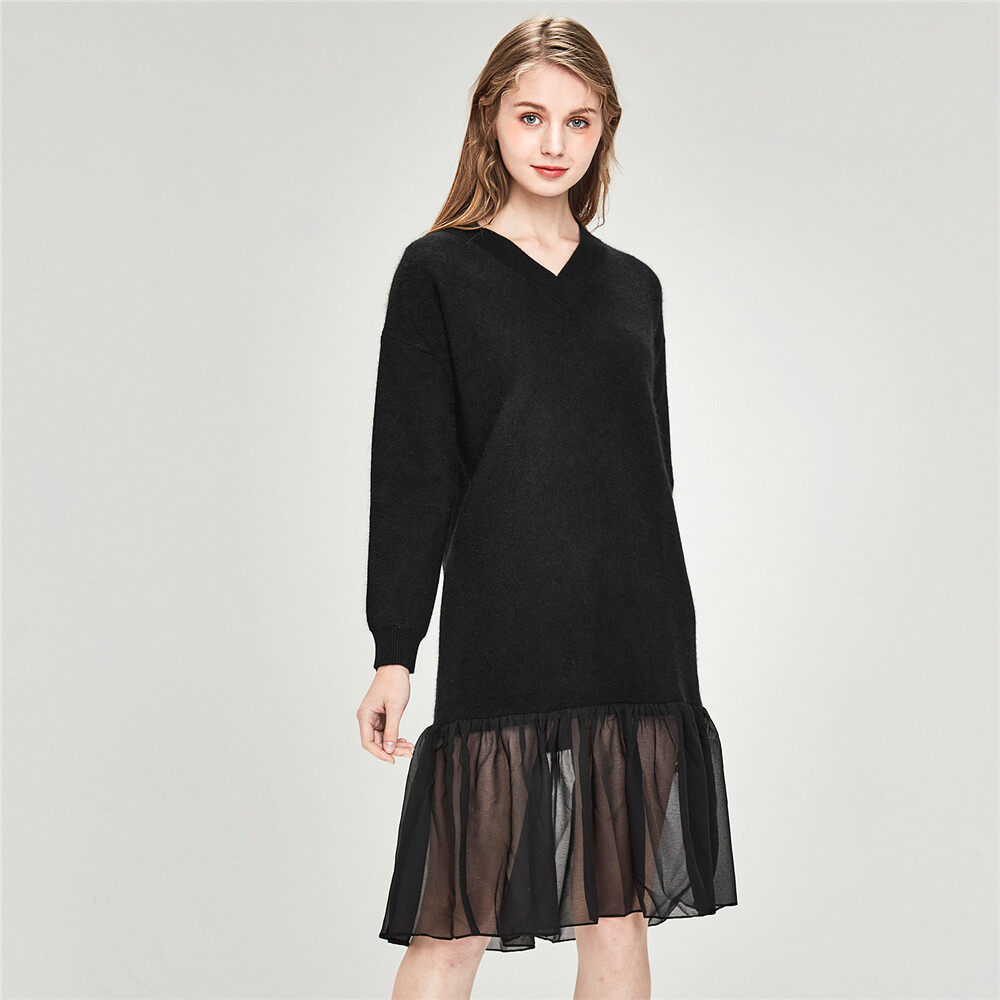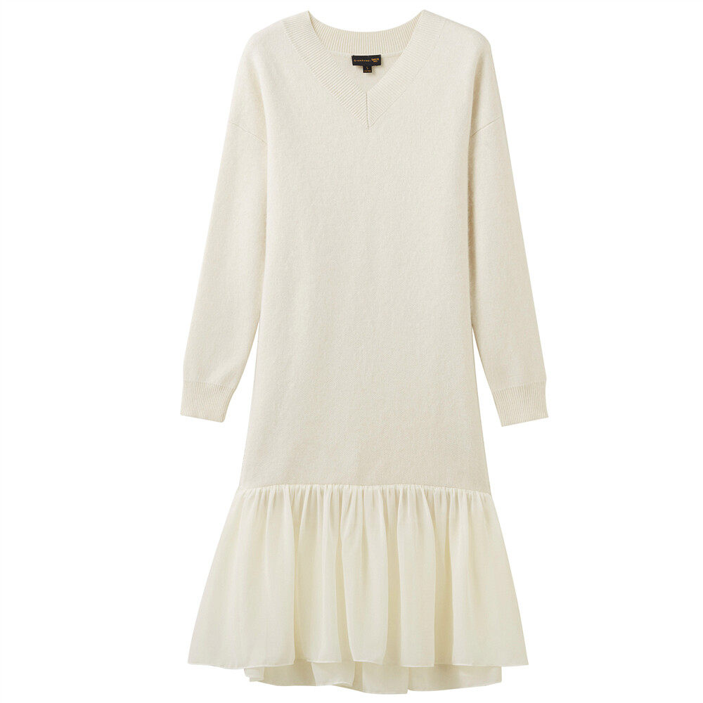 佐丹奴 Длинная дизайнерская юбка, шифоновое трикотажное платье, средней длины, V-образный вырез