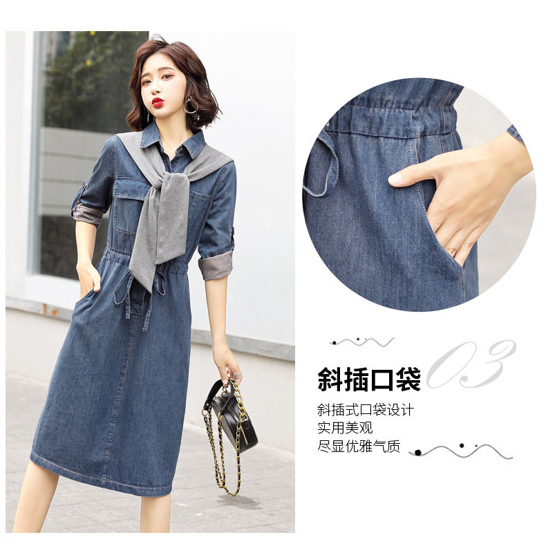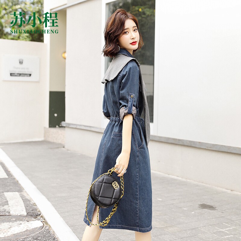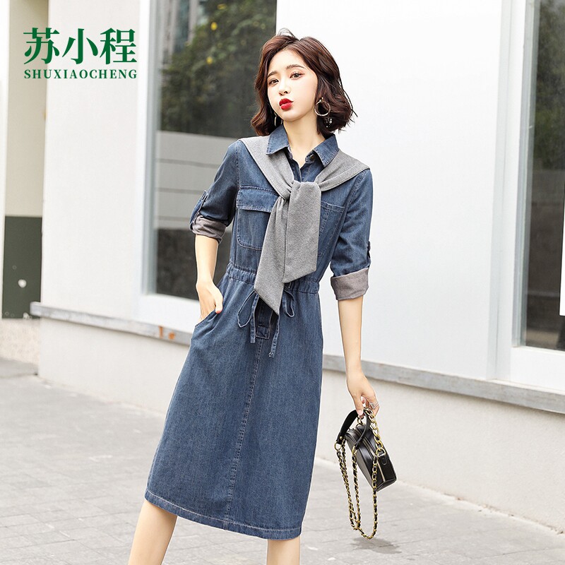 Весеннее джинсовое платье, молодежное платье, рубашка, осенняя длинная юбка, 2023, городской стиль, подходит для подростков, французский стиль, длина макси