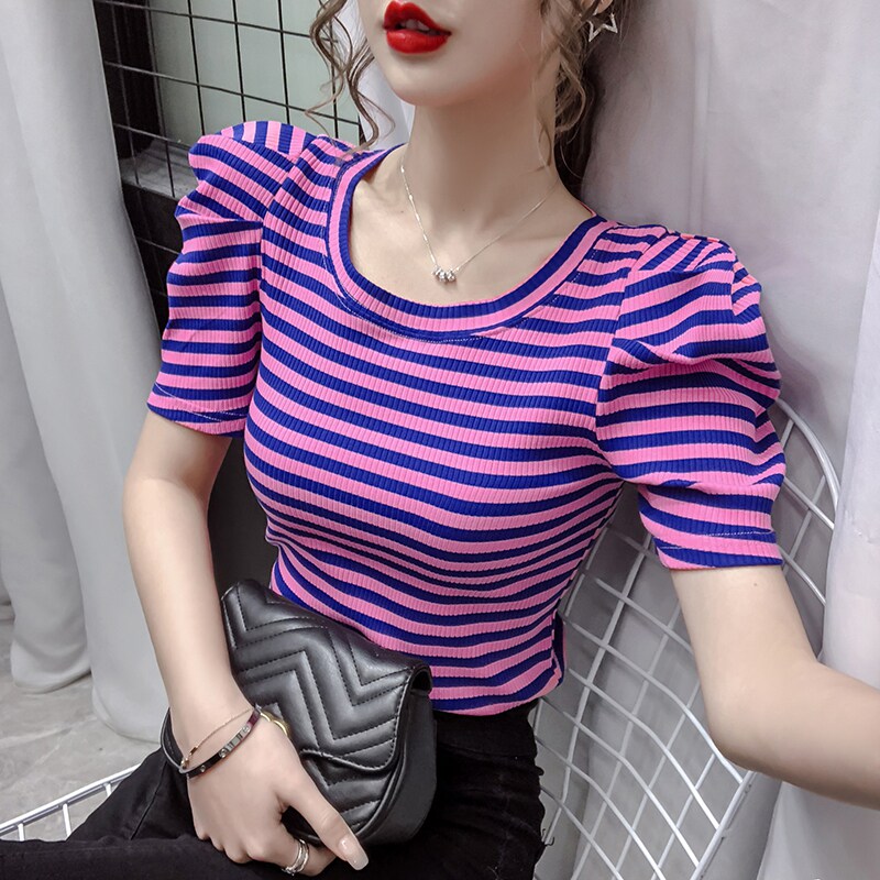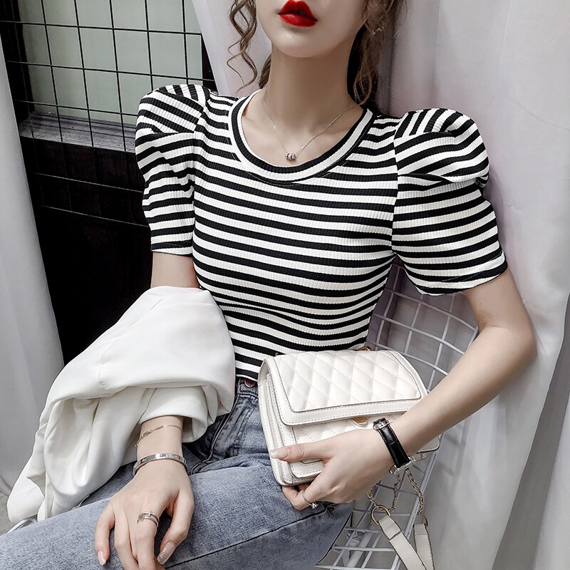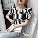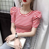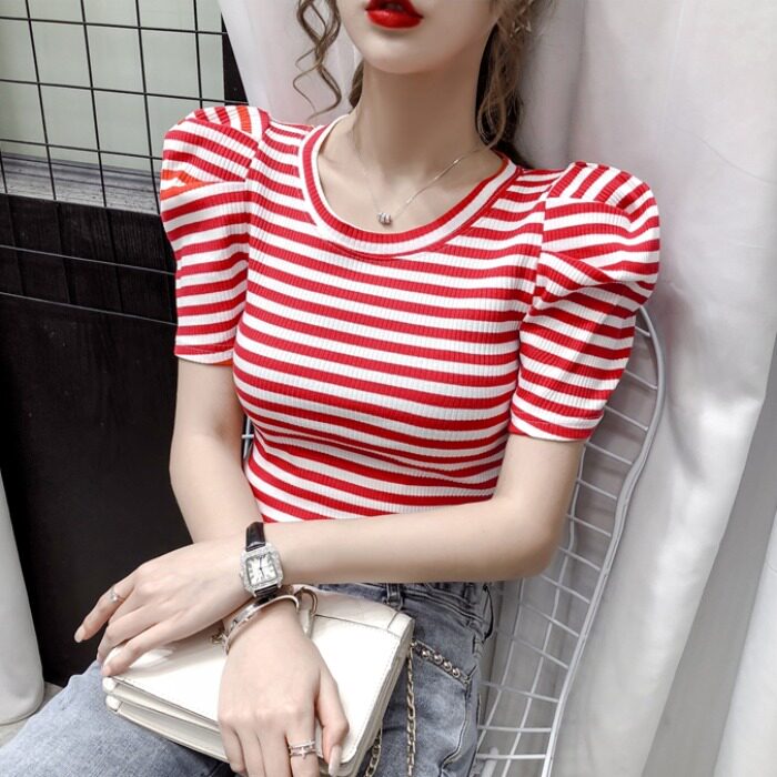 Tide, футболка, летняя короткая дизайнерская летняя одежда, короткий рукав, облегающий крой, тренд сезона, рукава фонарики
