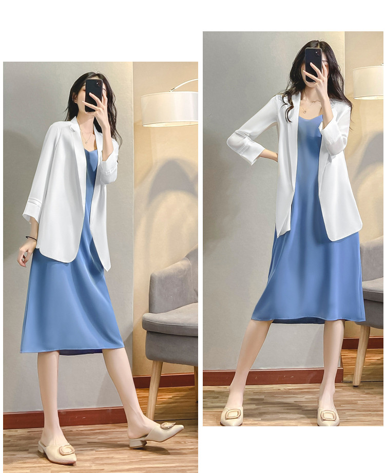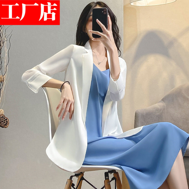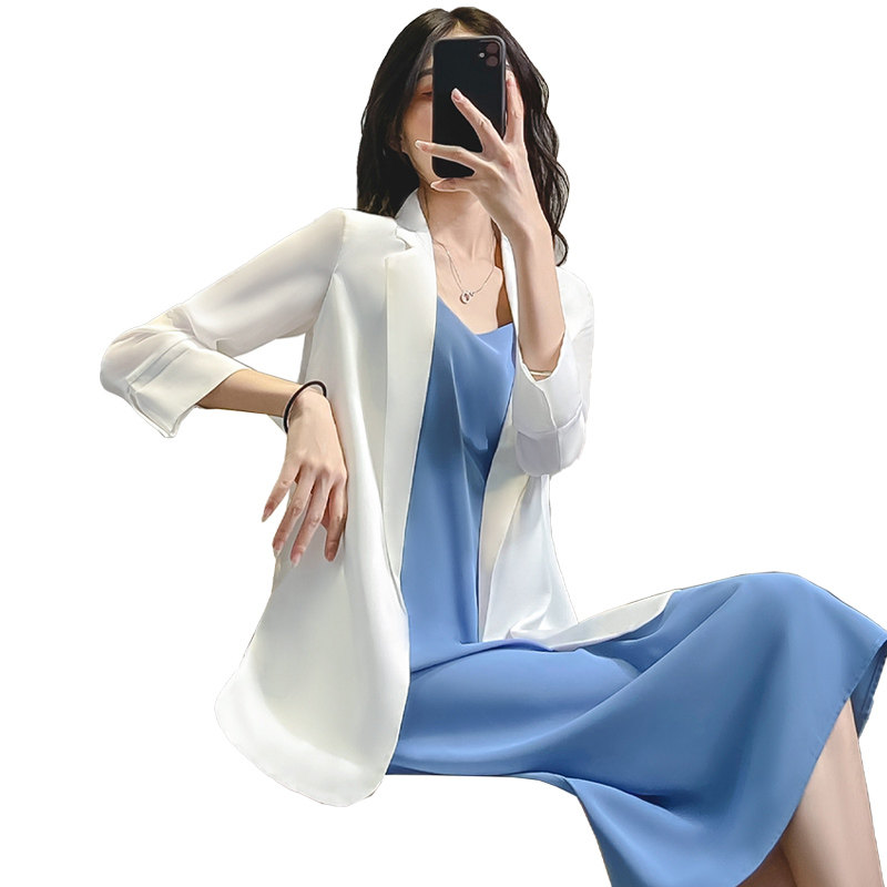 Белый пиджак классического кроя, костюм, летнее платье, платье-комбинация, комплект, подходит для подростков