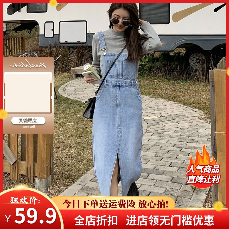 Джинсовый джинсовый сарафан, весенняя юбка, ретро длинное платье, высокая талия, в корейском стиле, средней длины