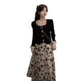 Осеннее сексуальное платье, юбка в складку, комплект, 2021 года, французский стиль, в цветочек, популярно в интернете