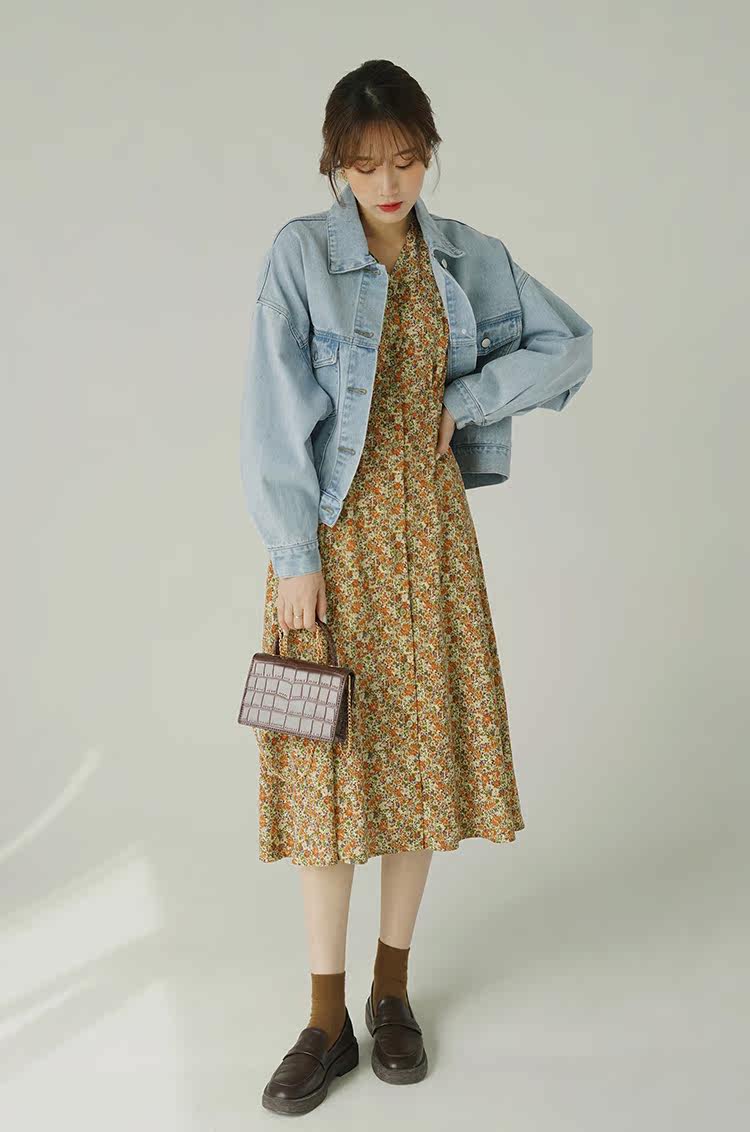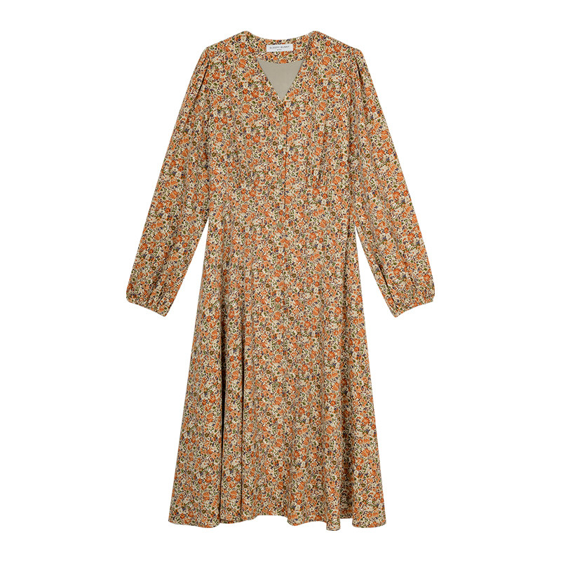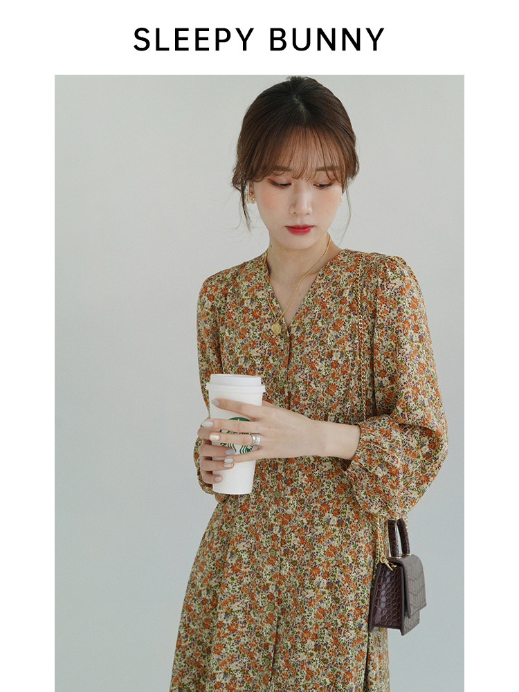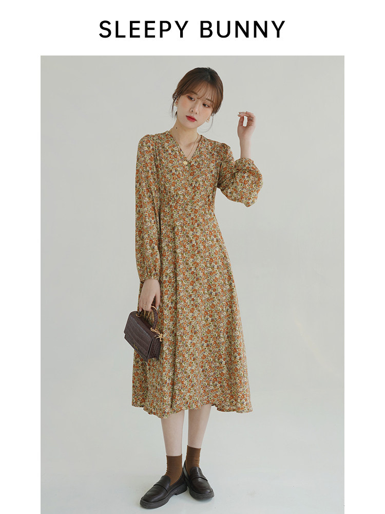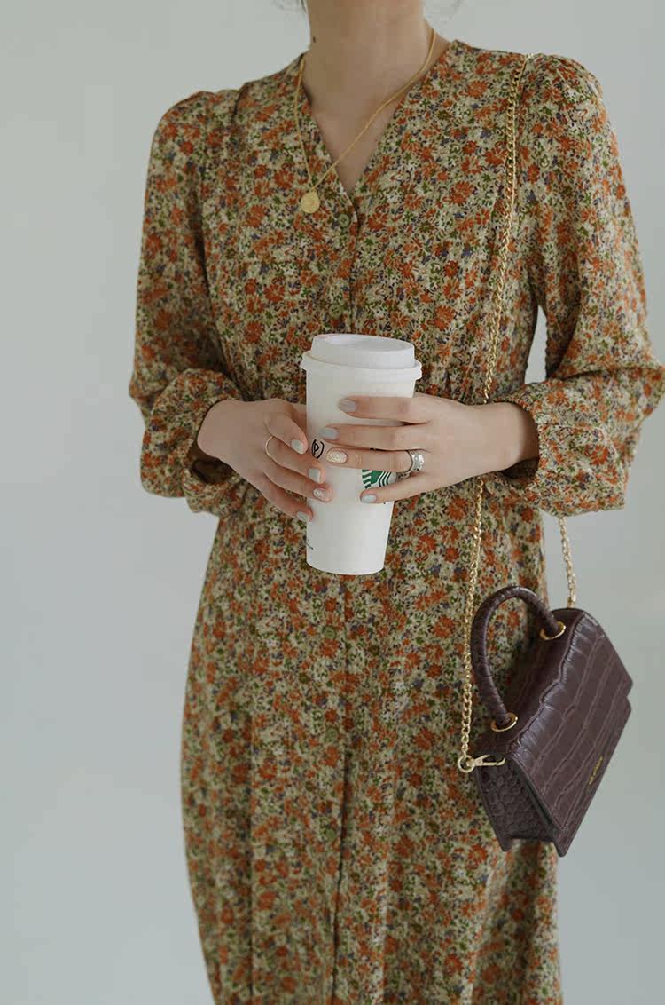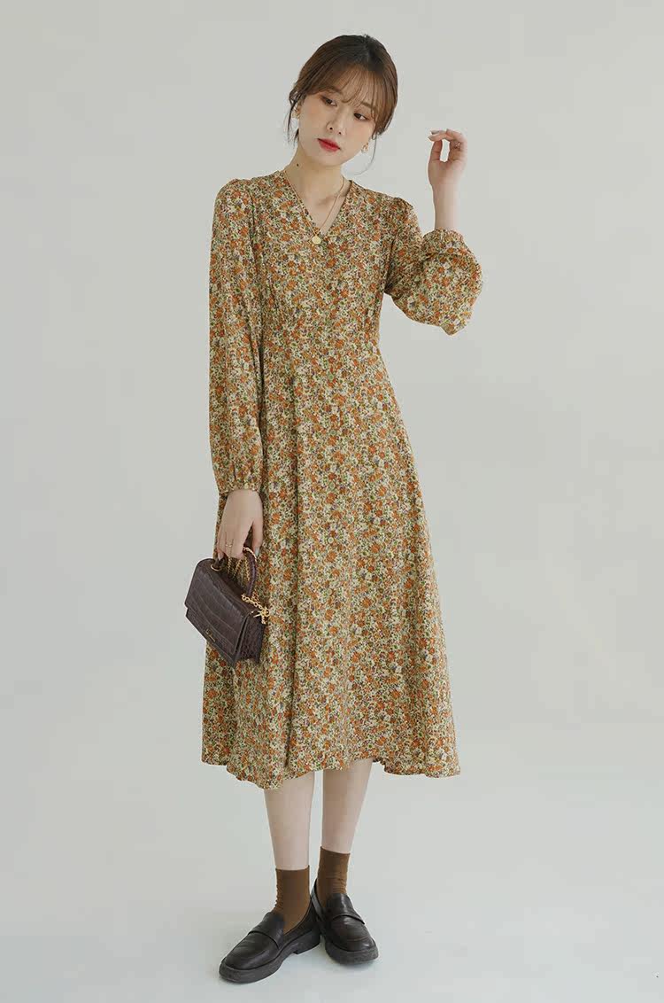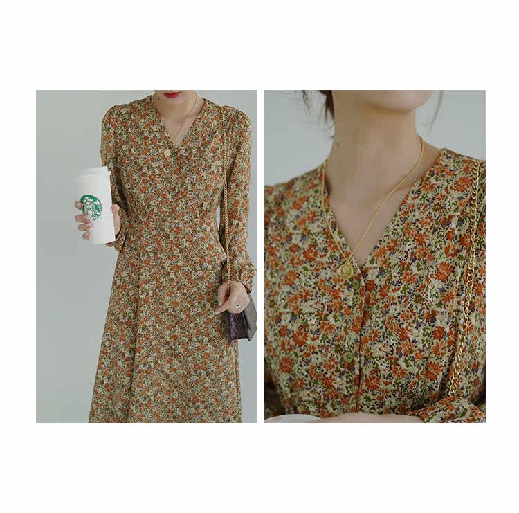 Винтажное платье, лонгслив, высокая талия, цветочный принт, французский стиль