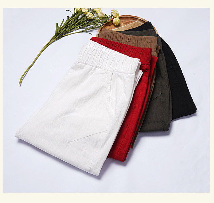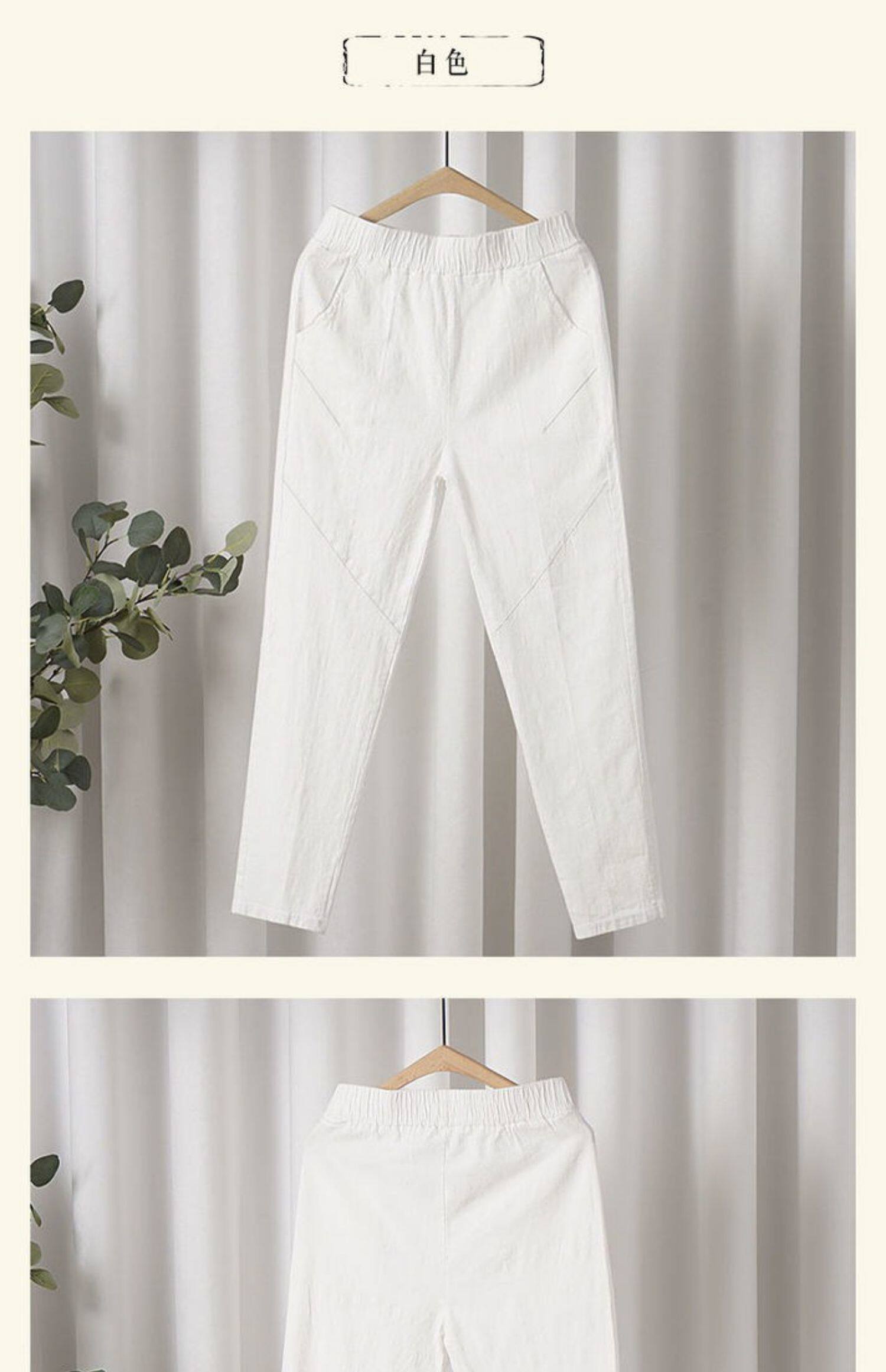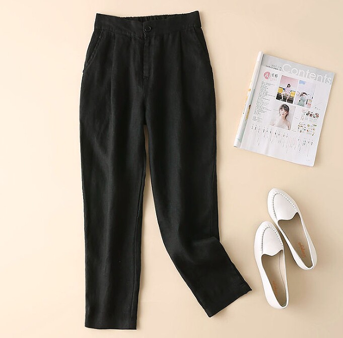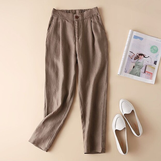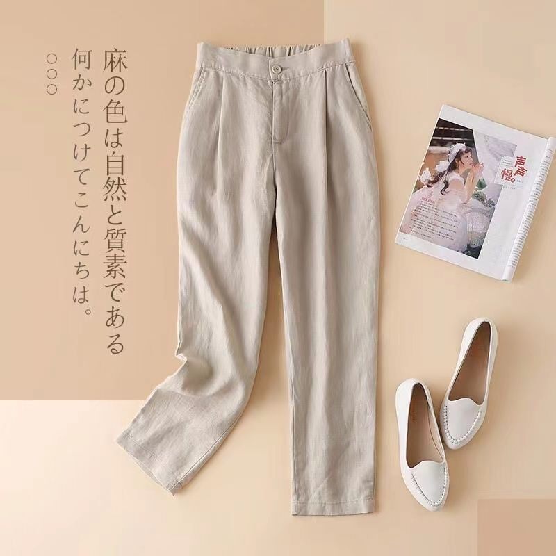 Тонкие штаны, повседневные брюки, из хлопка и льна, в корейском стиле, свободный крой, высокая талия