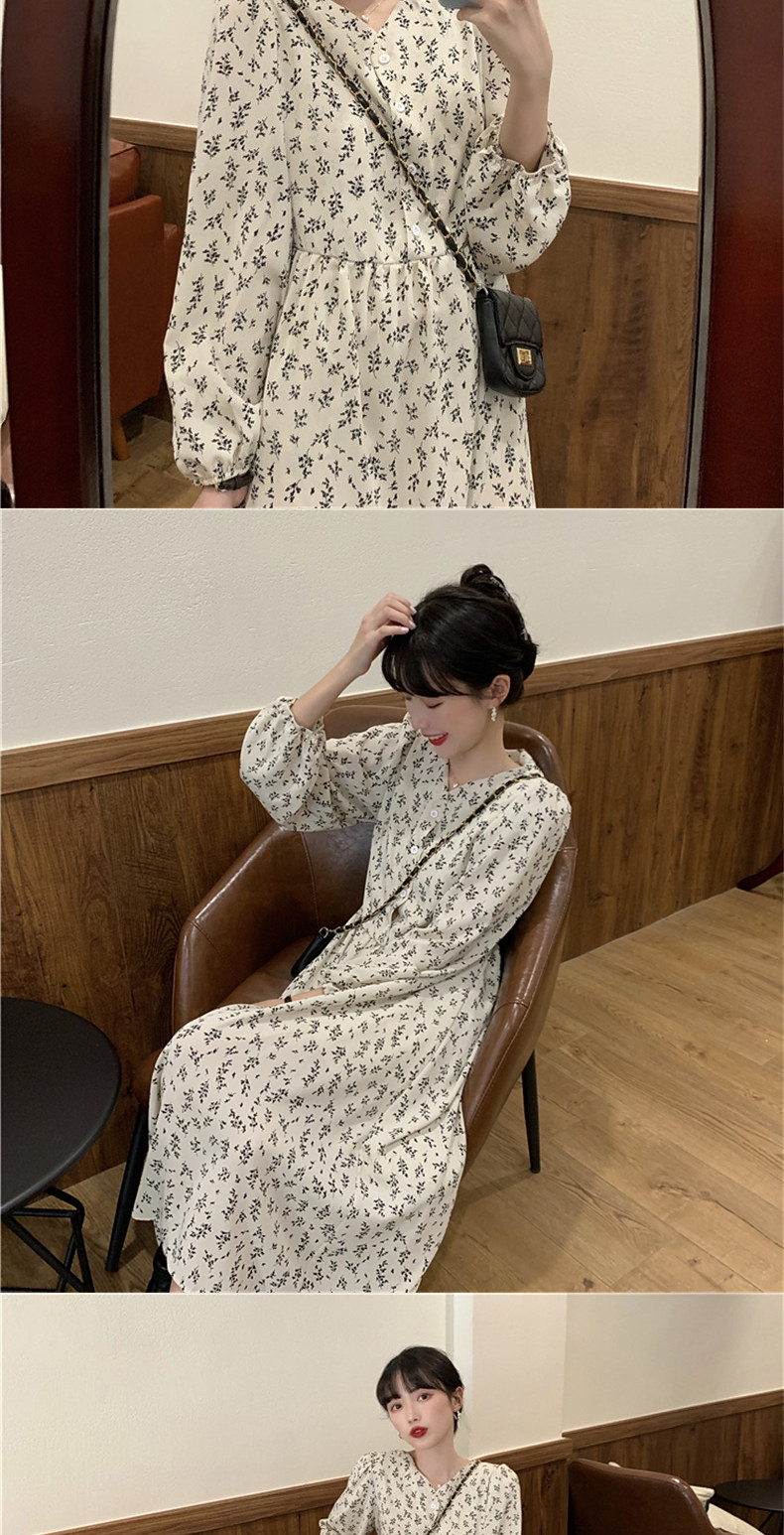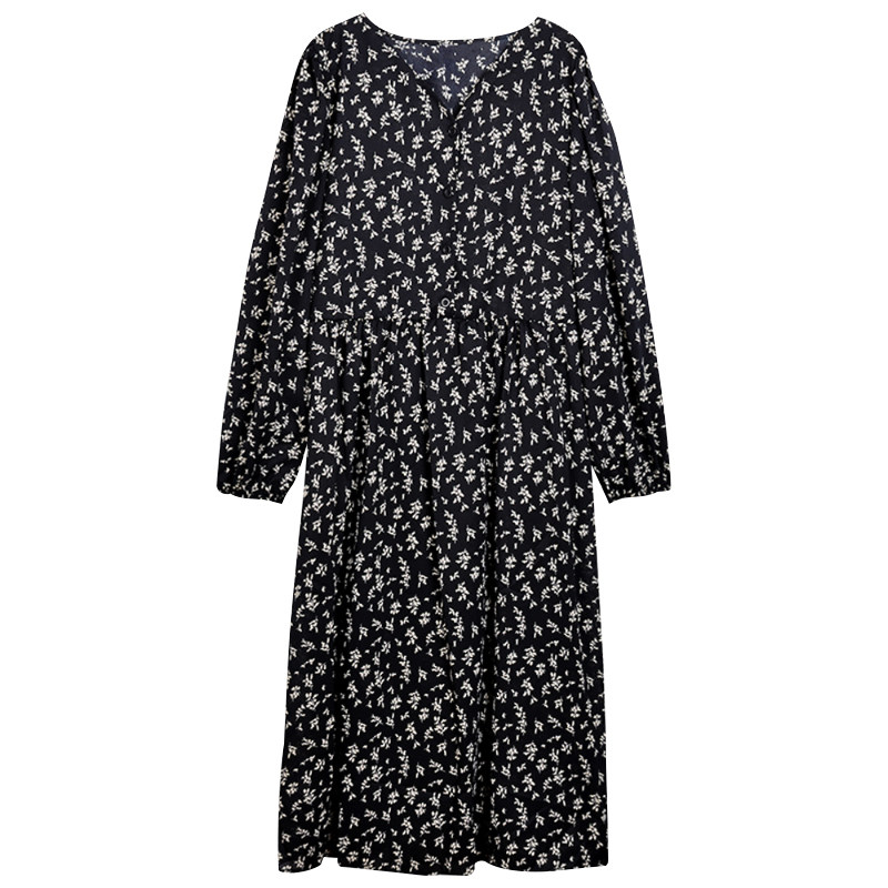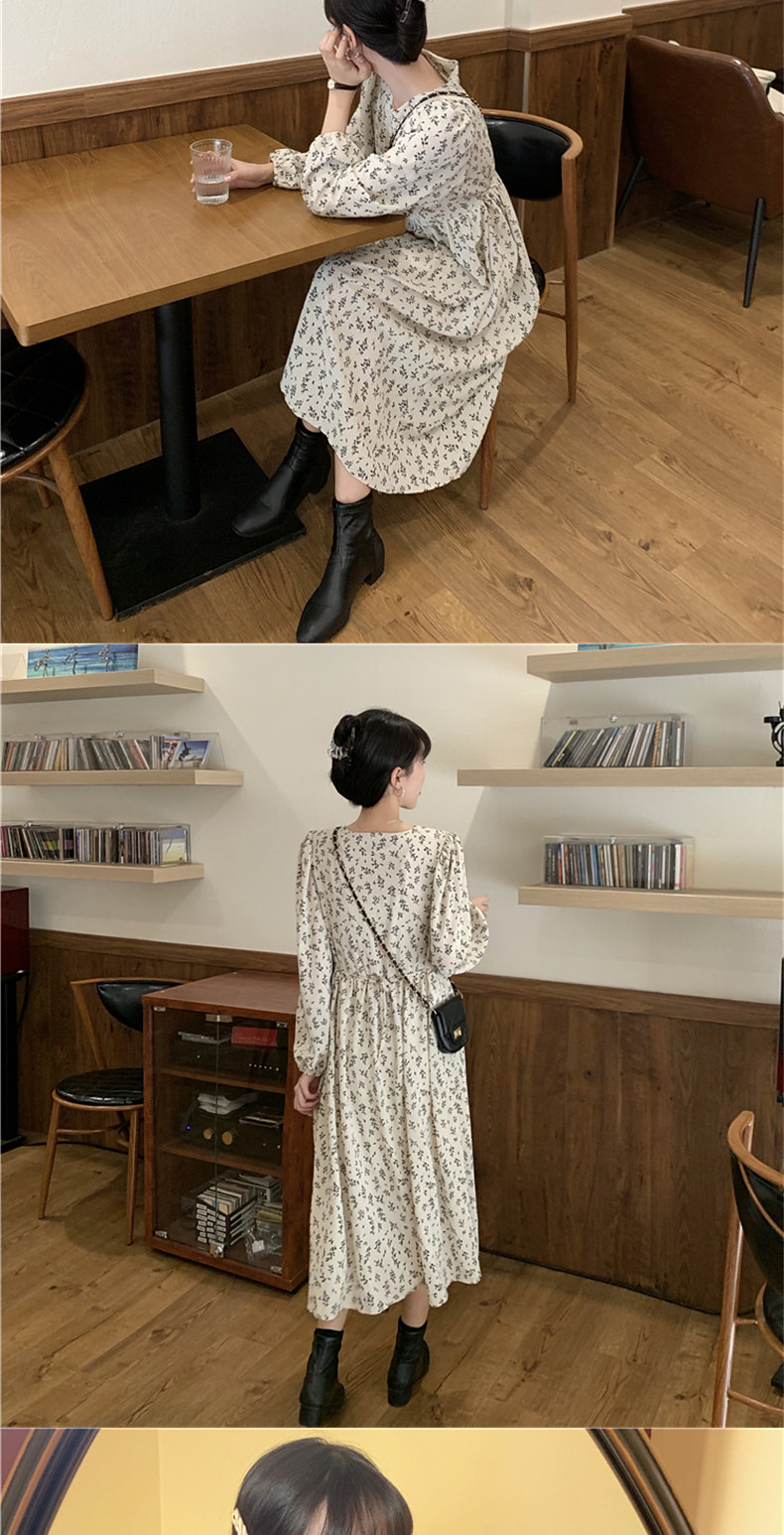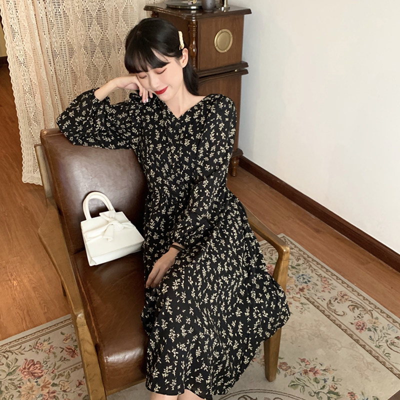 Осенний вместительный и большой белый лонгслив, платье, длинная юбка, большой размер, французский стиль, в цветочек