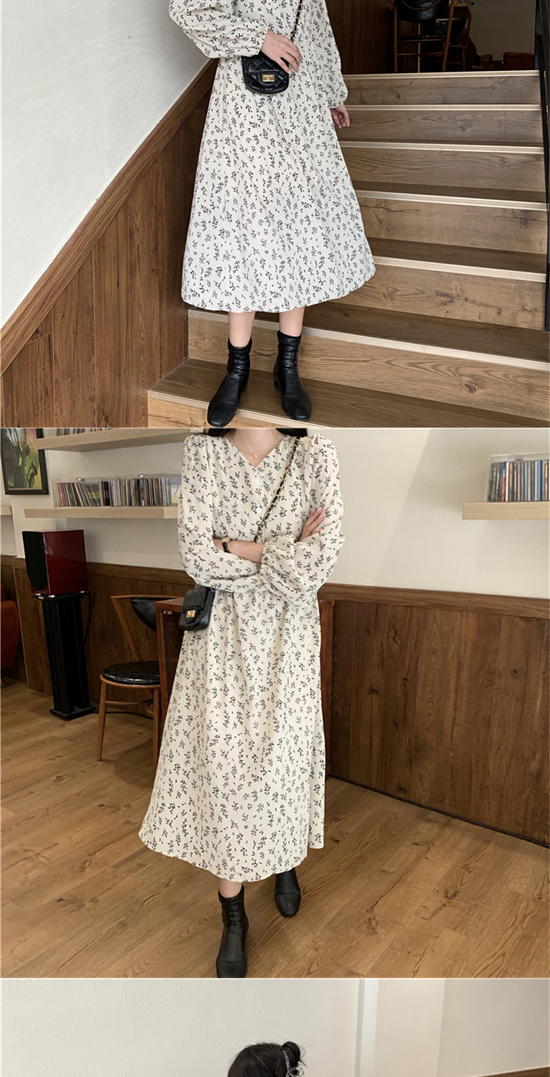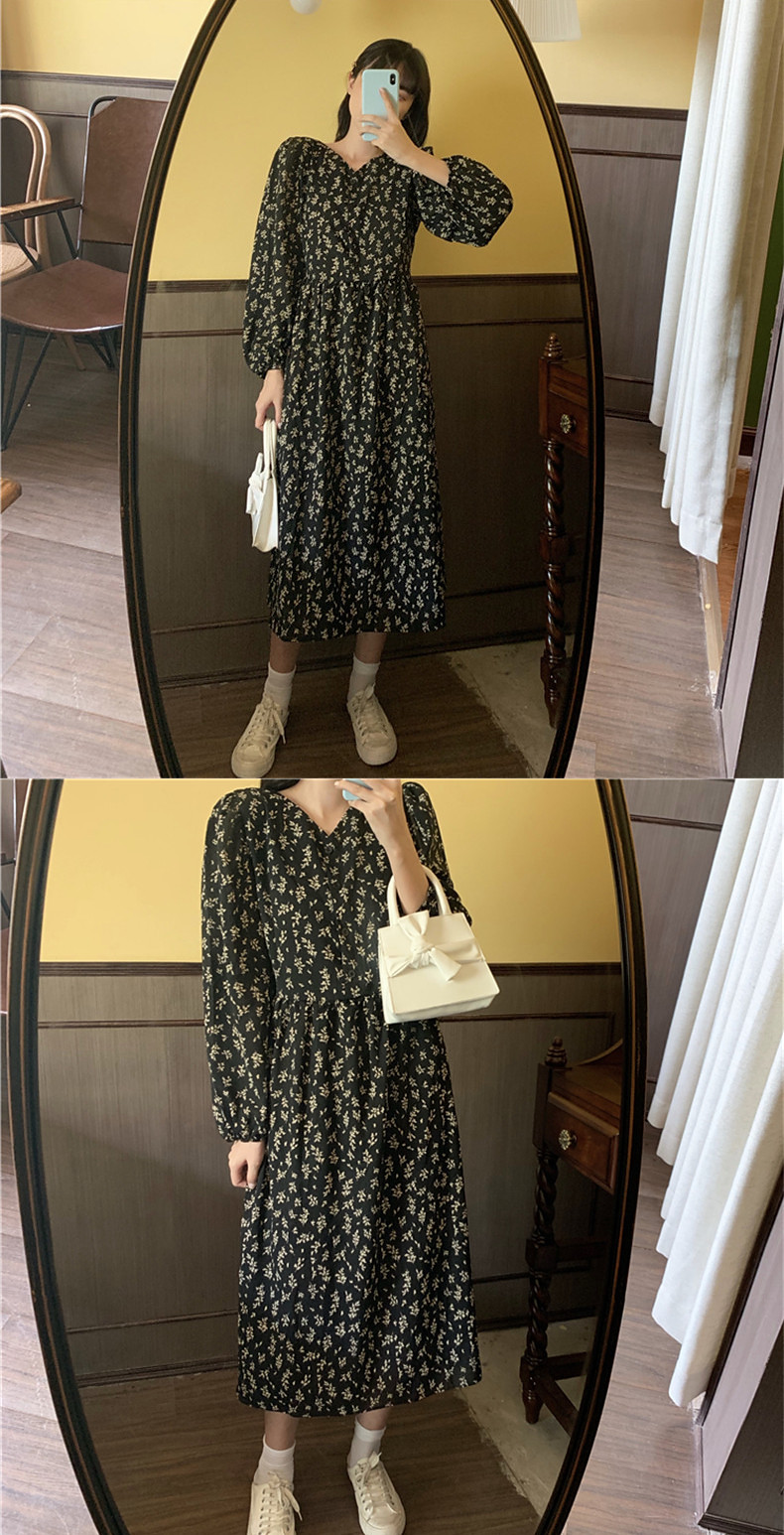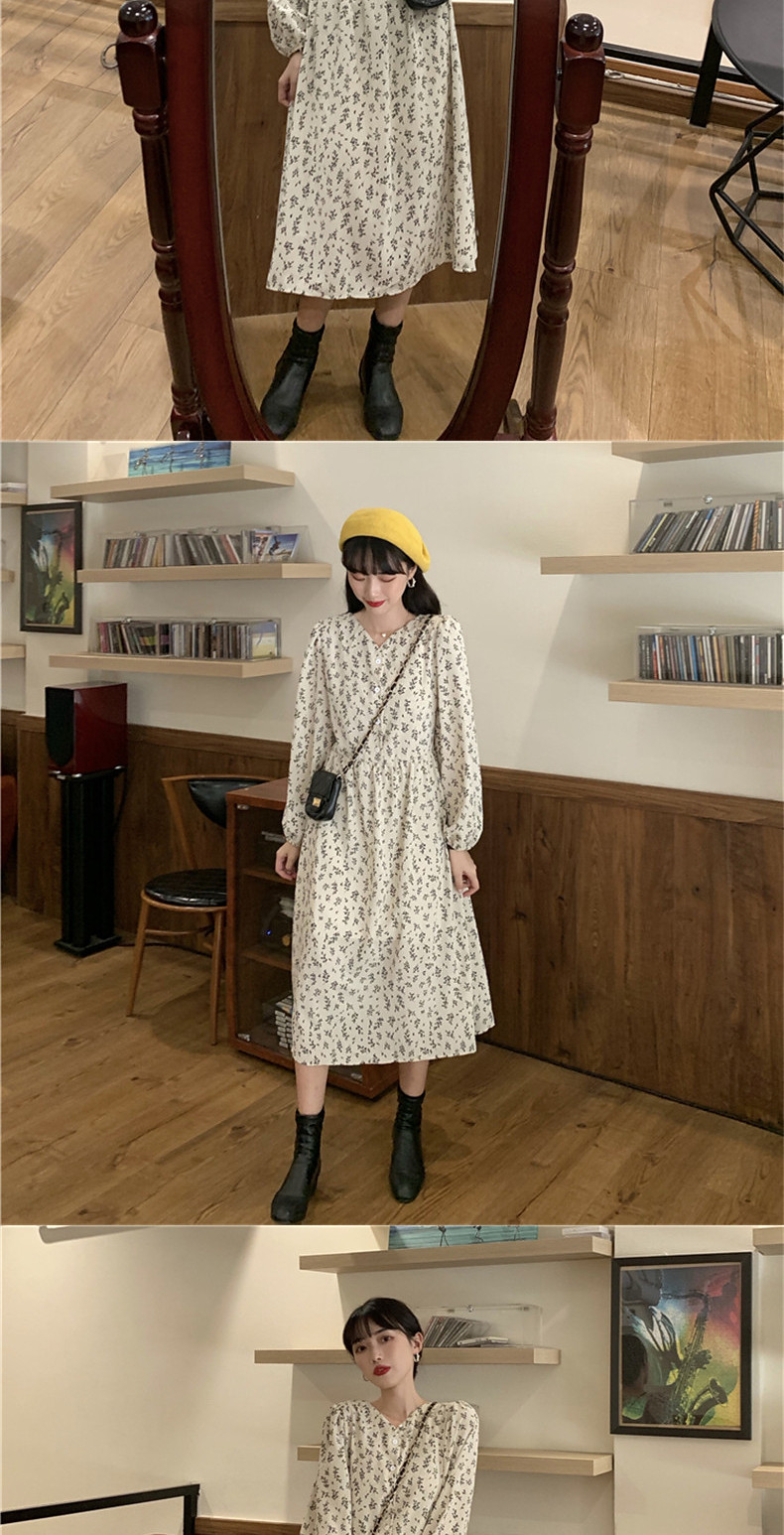 Осенний вместительный и большой белый лонгслив, платье, длинная юбка, большой размер, французский стиль, в цветочек