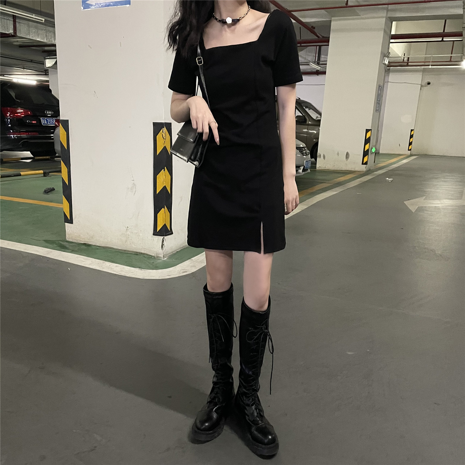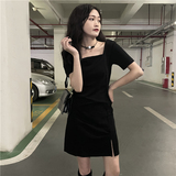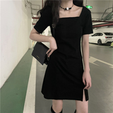 Короткое платье, ретро мини-юбка, городской стиль, квадратный вырез, французский стиль