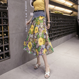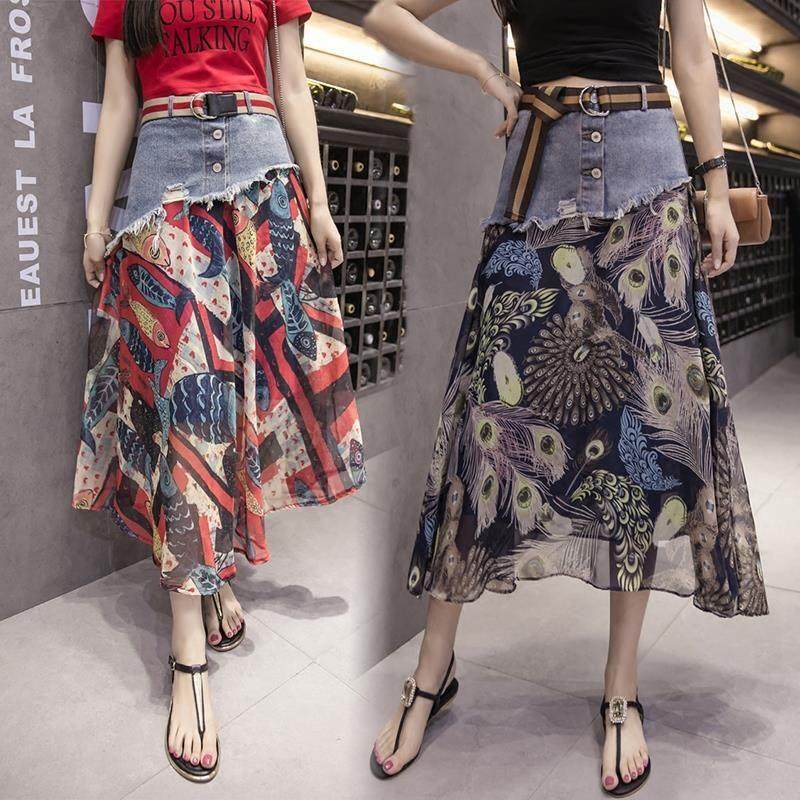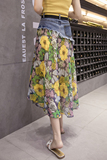 Весенняя летняя длинная джинсовая шифоновая юбка, коллекция 2022, средней длины, цветочный принт, высокая талия