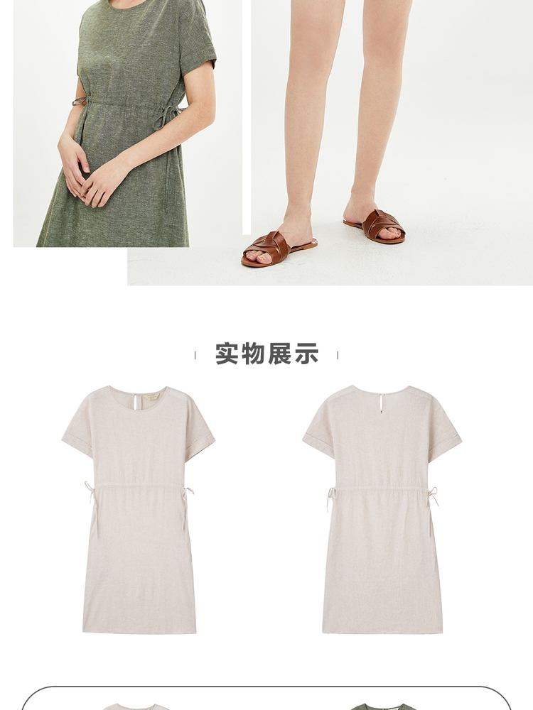 佐丹奴 Свежая юбка, натуральный ремень, корсет с круглым воротником, платье