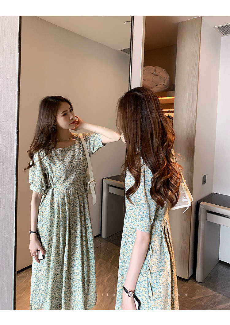 Элегантное платье, летний приталенный ретро корсет, базовая длинная юбка, в цветочек, сезон 2021, французский стиль