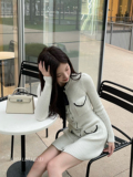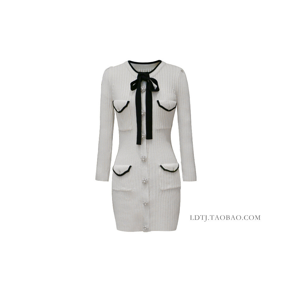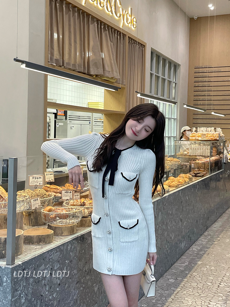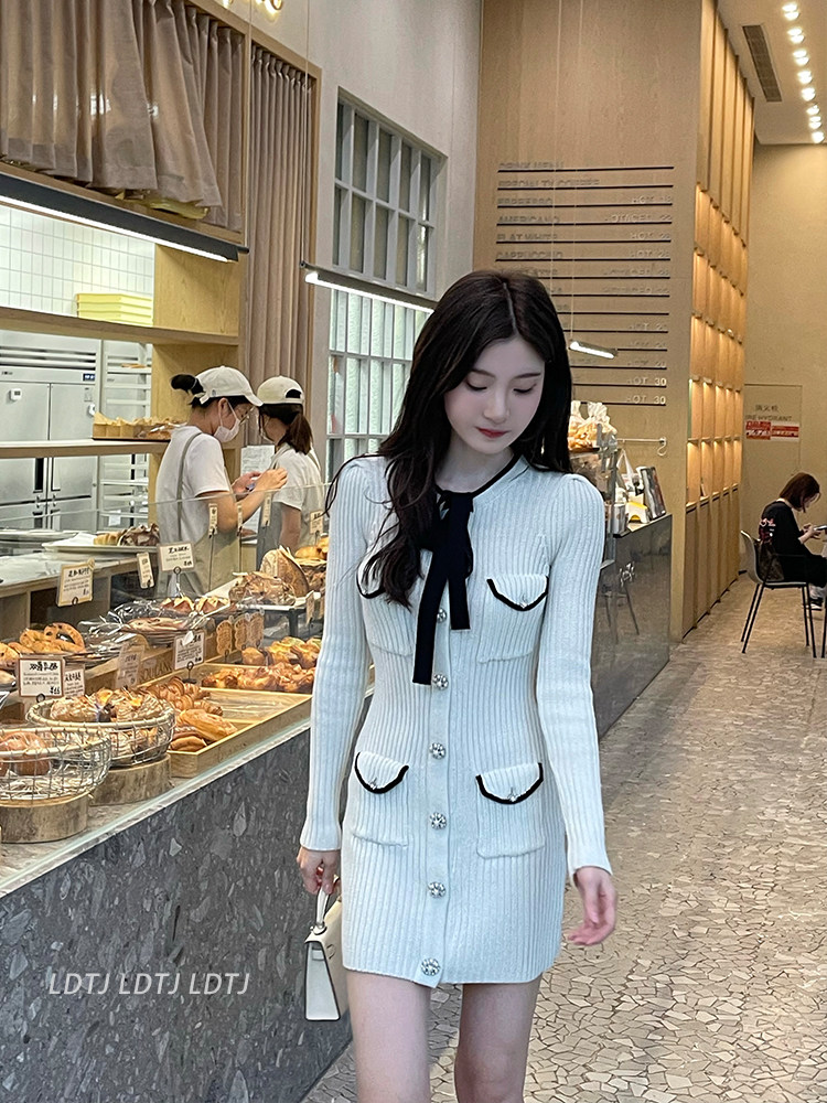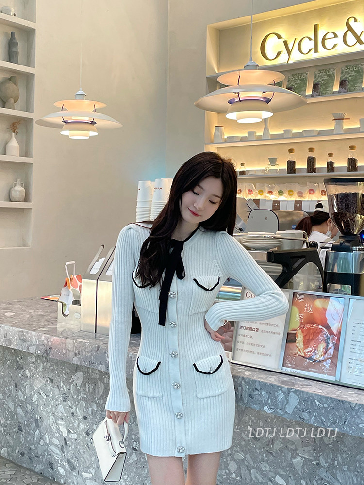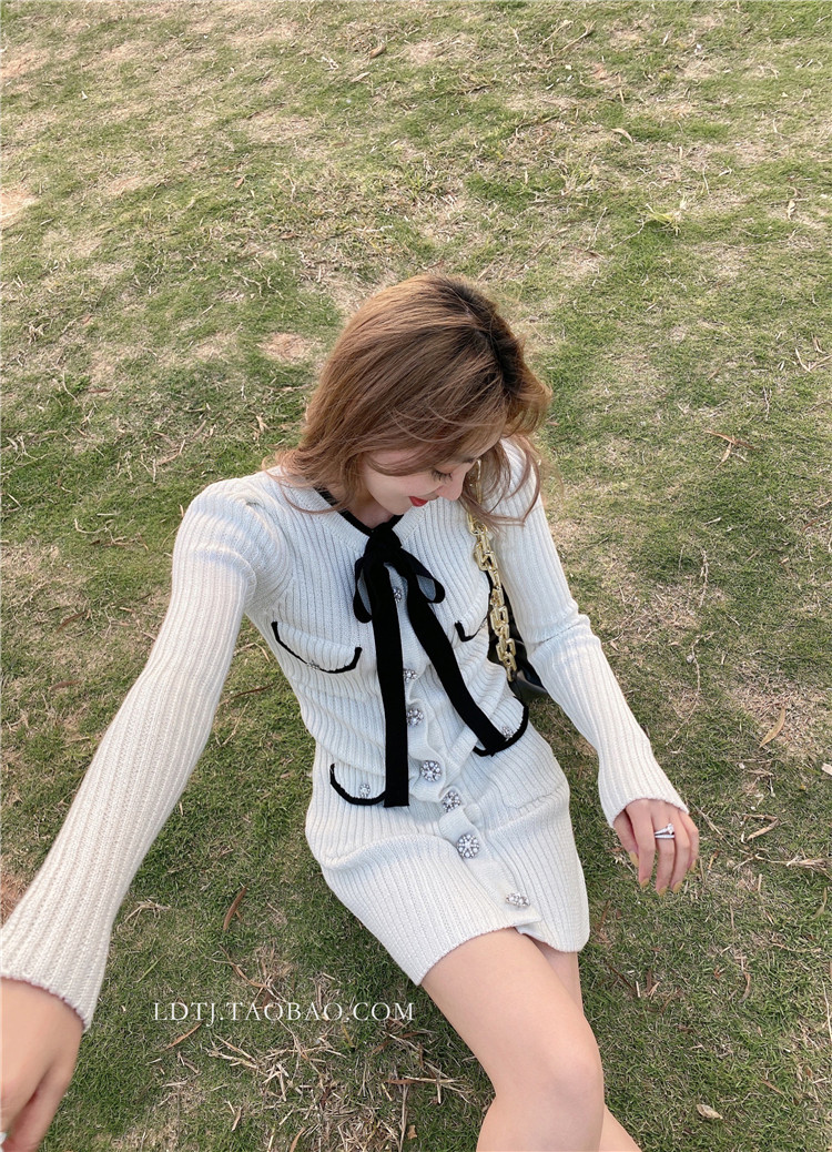 Модный зимний трикотажный милый сексуальный лонгслив с бантиком, юбка, облегающий крой, с акцентом на бедрах