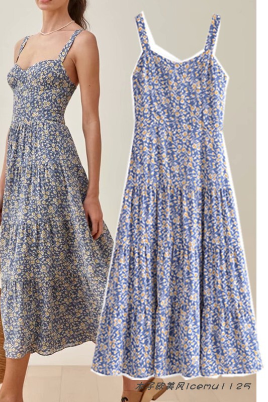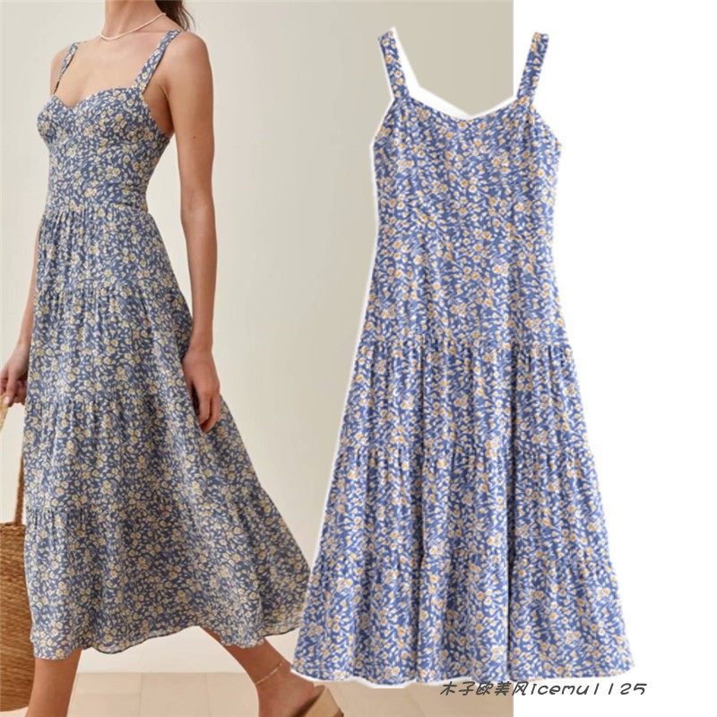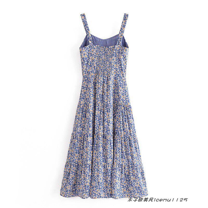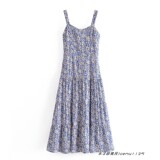 Милые ретро сексуальные подтяжки, боди, свежая длинная юбка, французский стиль, цветочный принт, по фигуре