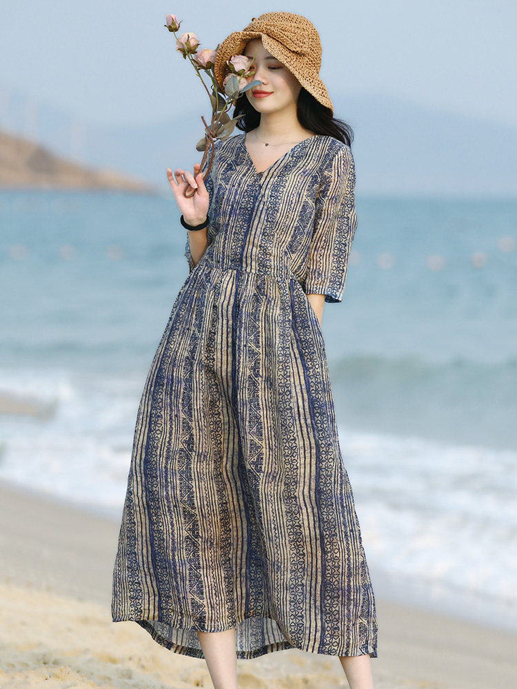 Летнее длинное платье, ретро длинная юбка, средней длины