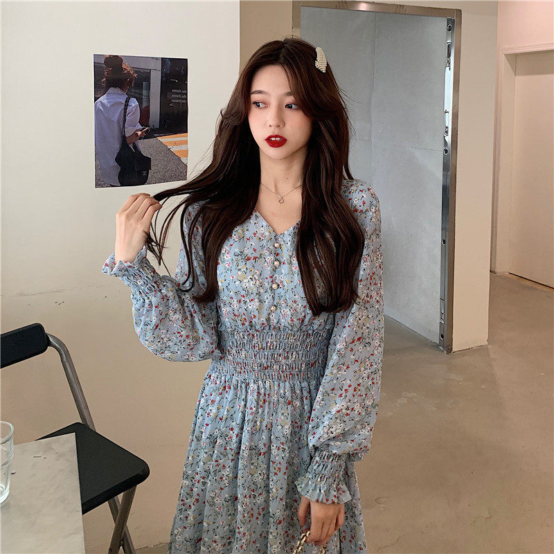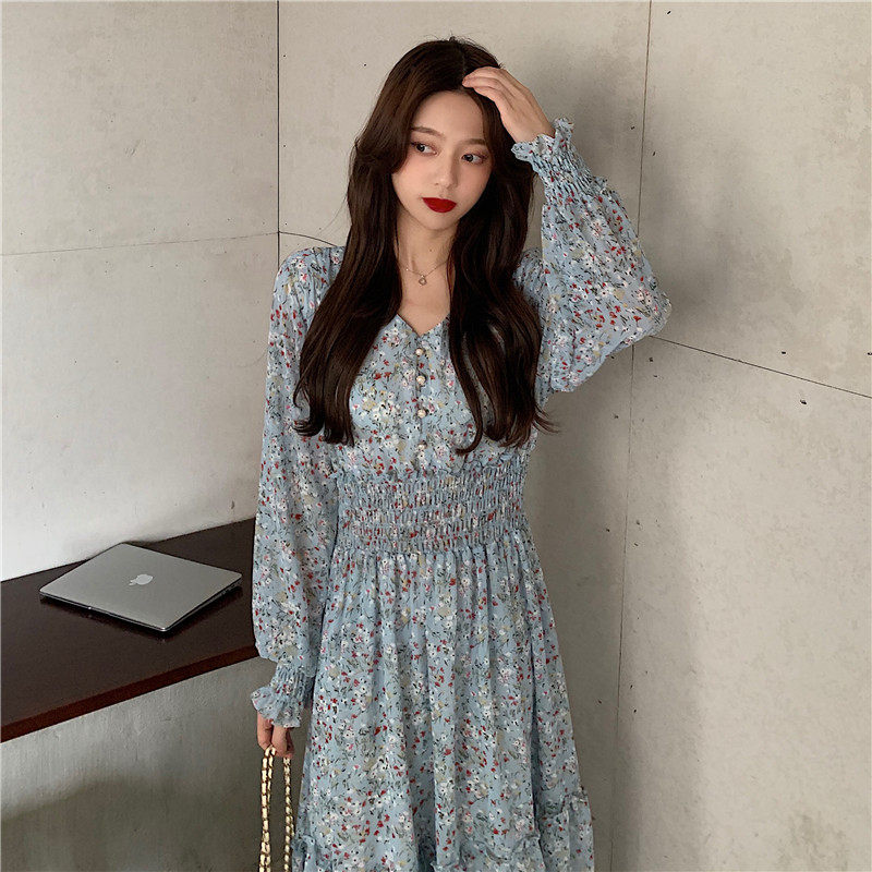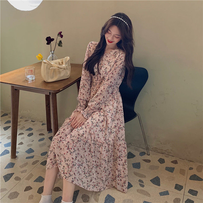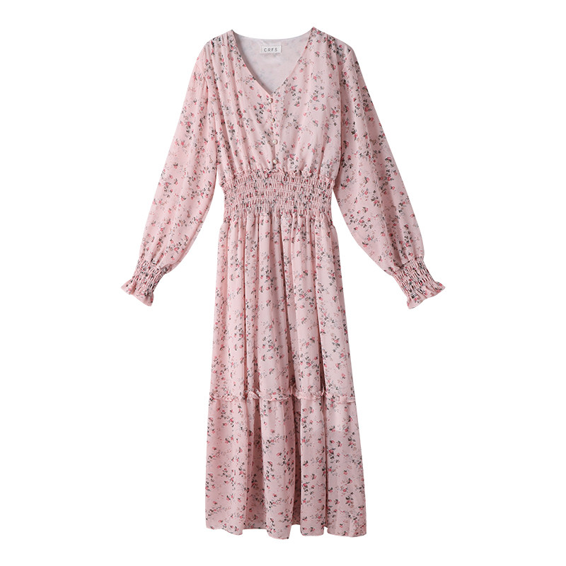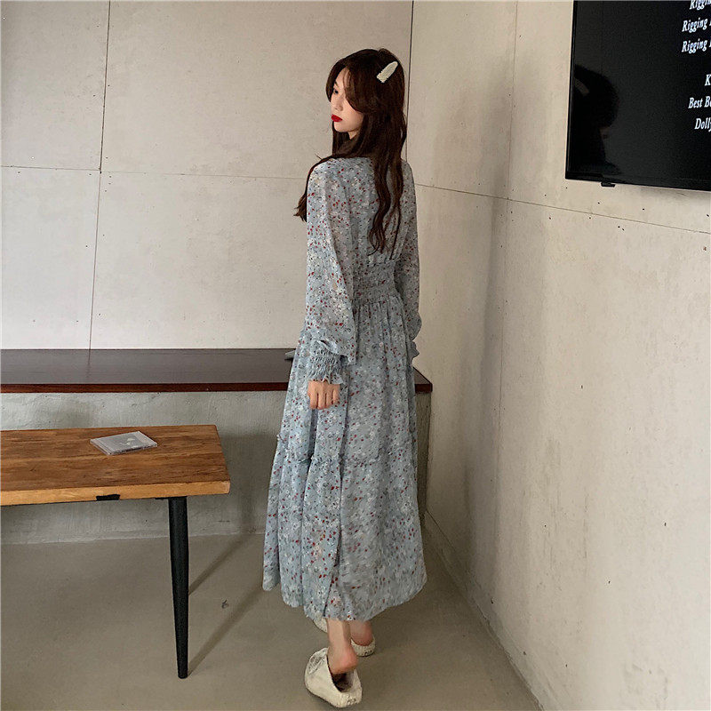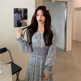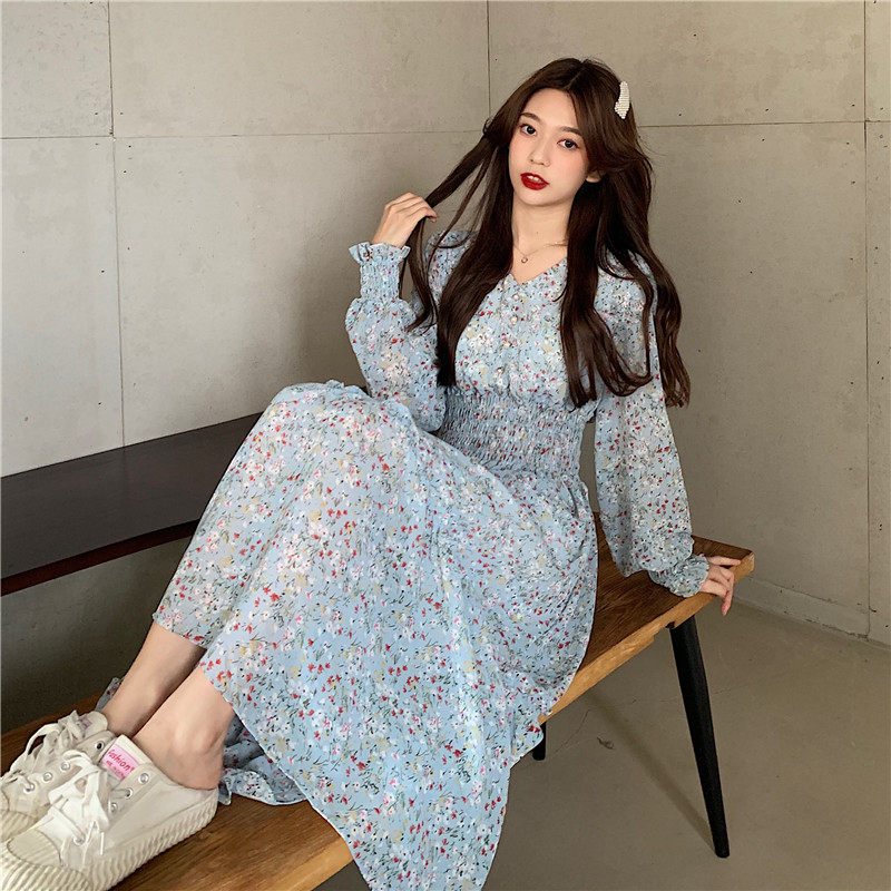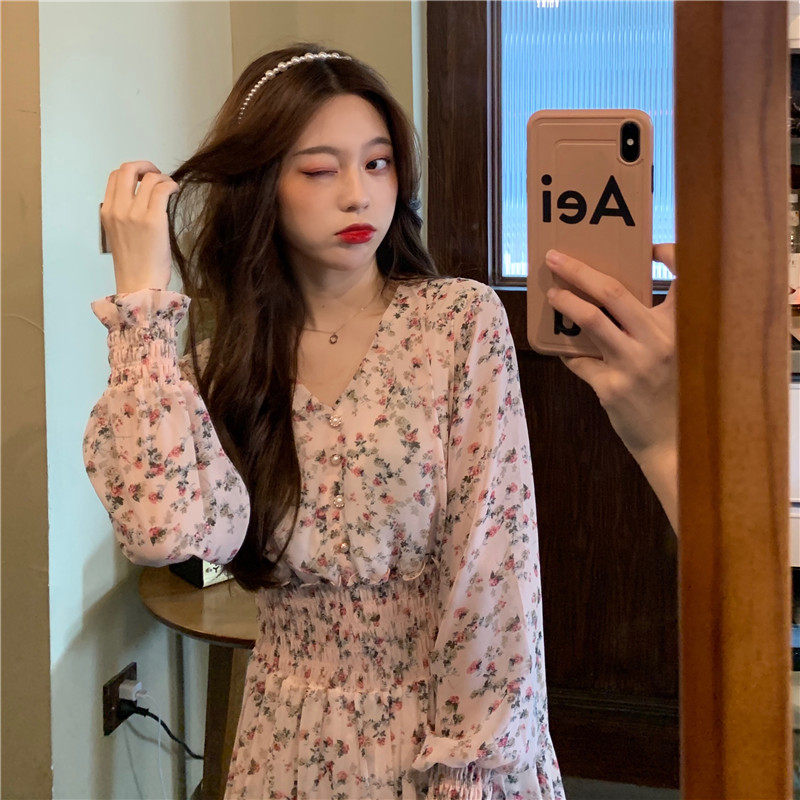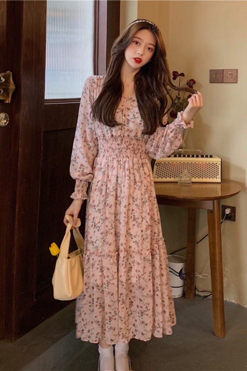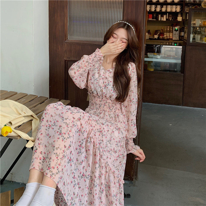 Демисезонный шифоновый лонгслив, приталенный корсет, длинная юбка, коллекция 2022, цветочный принт, французский стиль