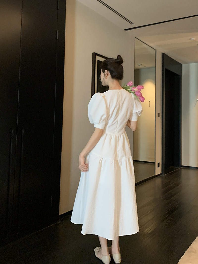 Ретро белое приталенное платье, корсет, длинная юбка, французский стиль, рукава фонарики, длина макси