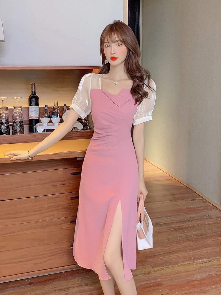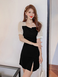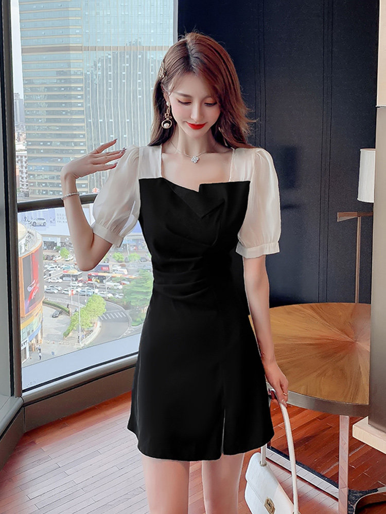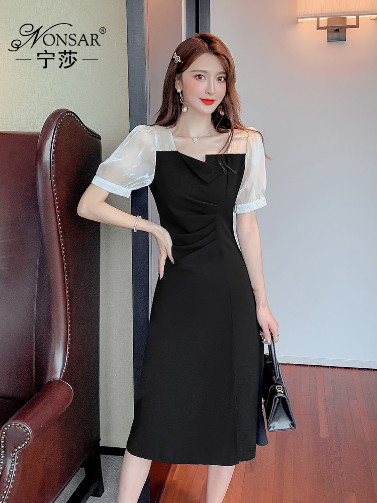 Шифоновое летнее черное платье, коллекция 2023, французский стиль, подходит для подростков, изысканный стиль, короткий рукав