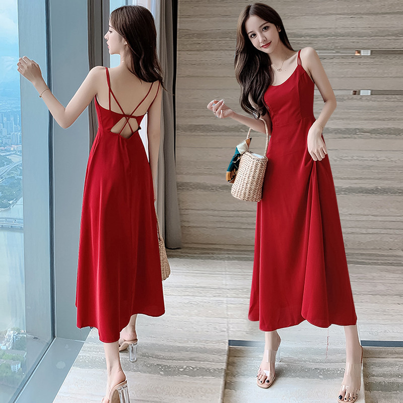 Дизайнерское летнее платье, сексуальная брендовая длинная юбка, красное платье-комбинация, с открытой спиной