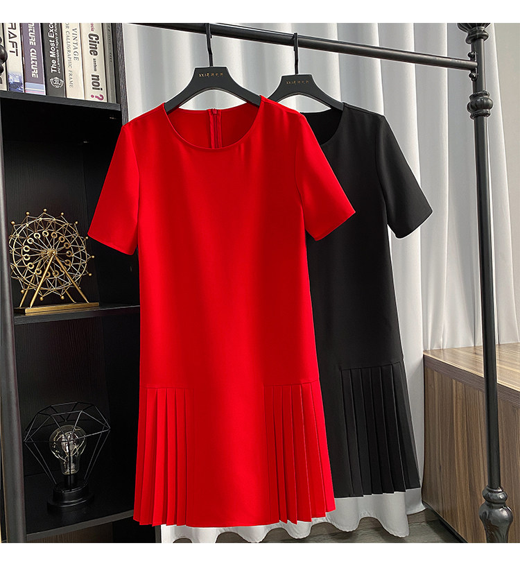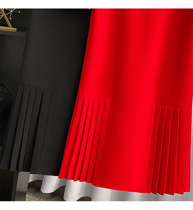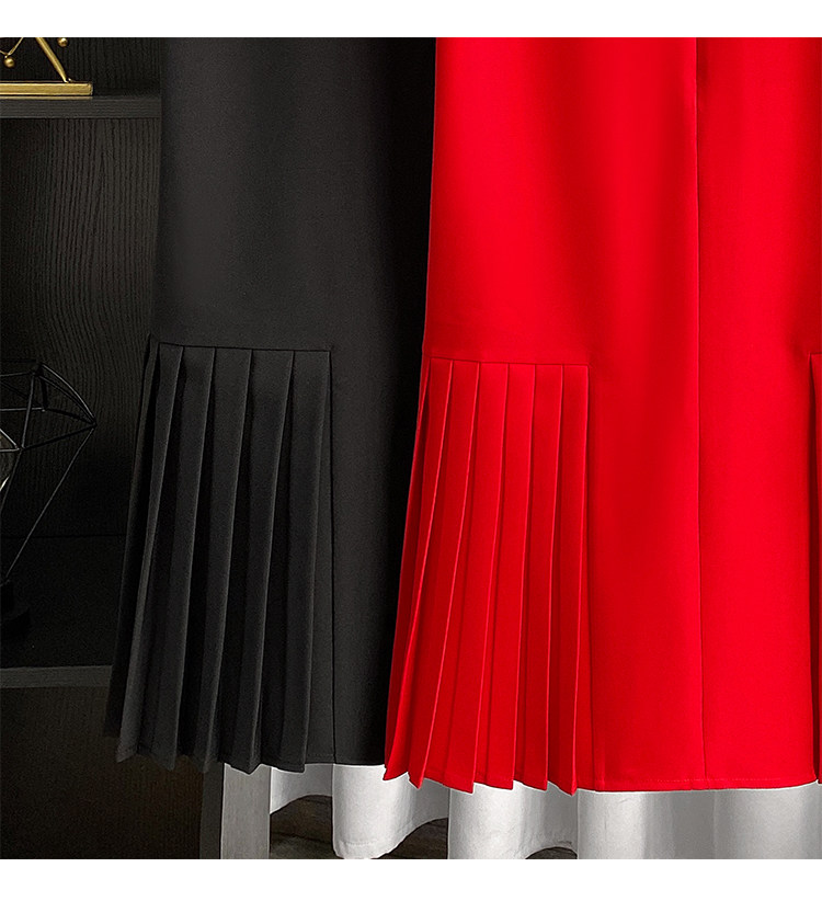 Летнее модное длинное однотонное платье с круглым воротником, юбка в складку, средней длины, плиссированная юбка
