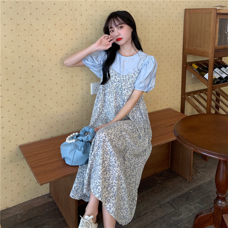 Платье, модная длинная юбка, эффект подтяжки, коллекция 2021, в корейском стиле, подходит для подростков, средней длины