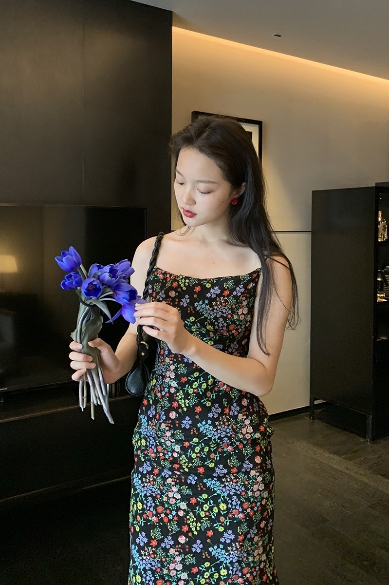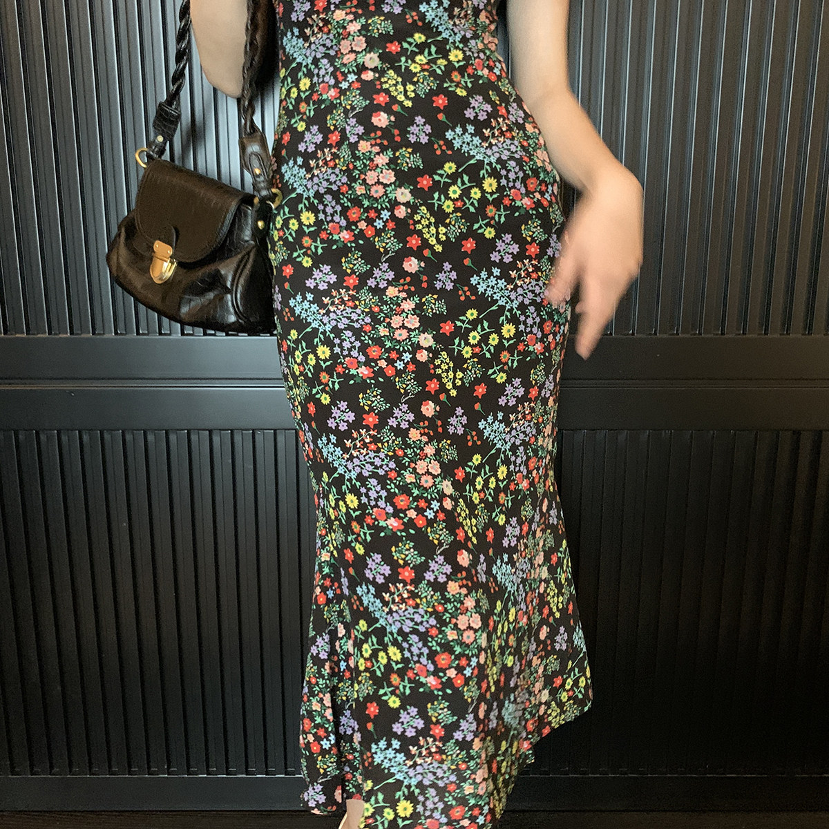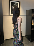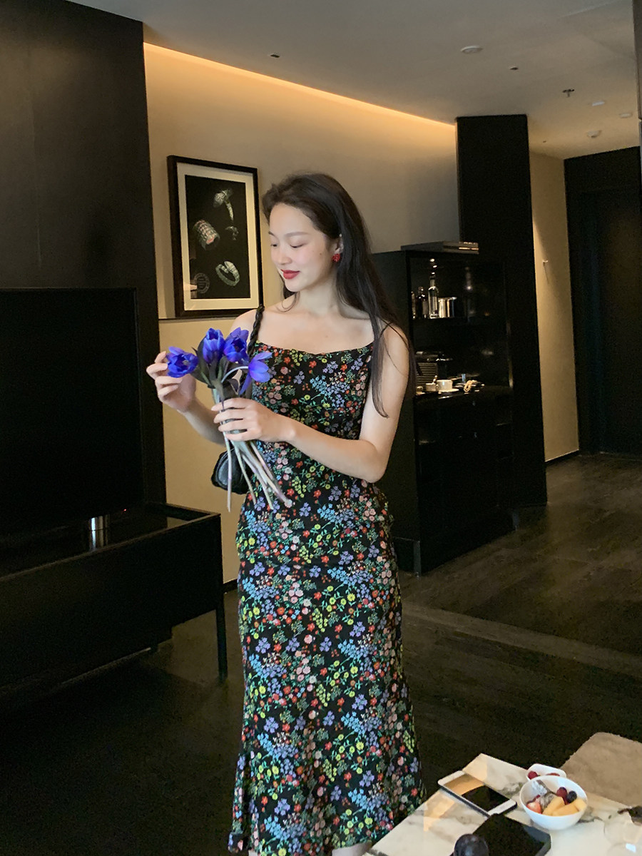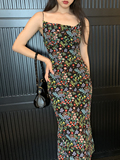 Ретро черное приталенное платье, корсет, длинная юбка, цветочный принт, длина макси