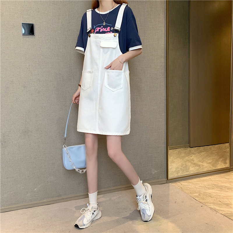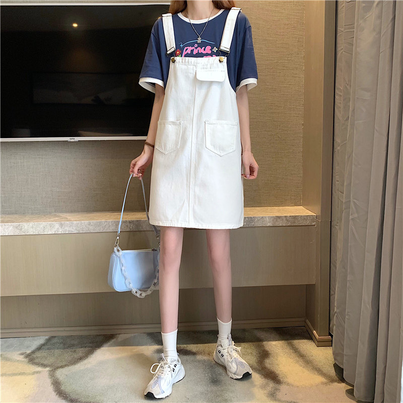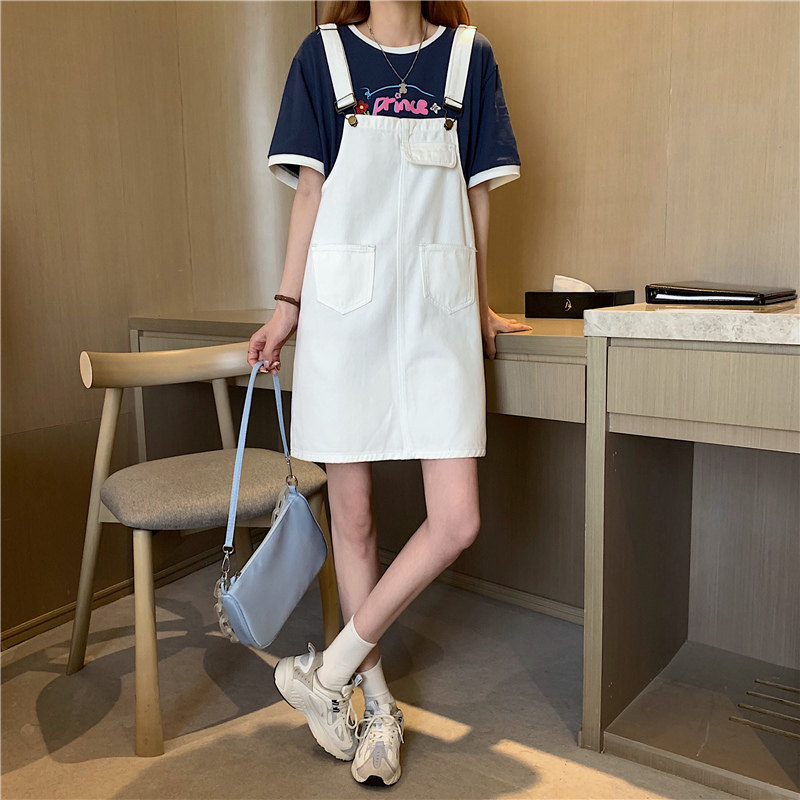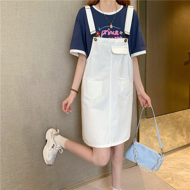 Летнее платье большого размера, мини-юбка, джинсовый сарафан, юбка, французский стиль, большой размер