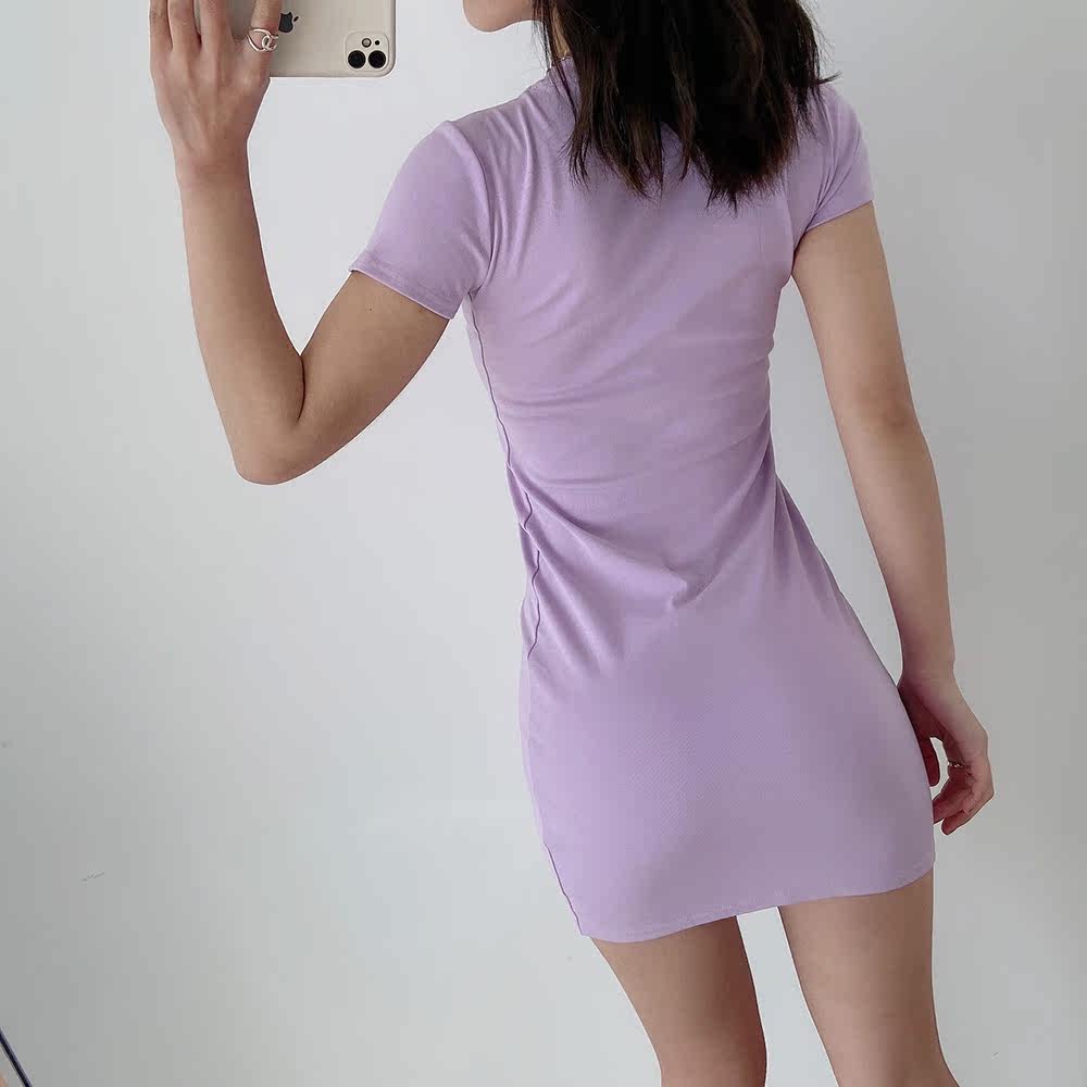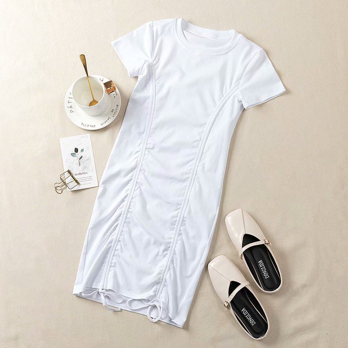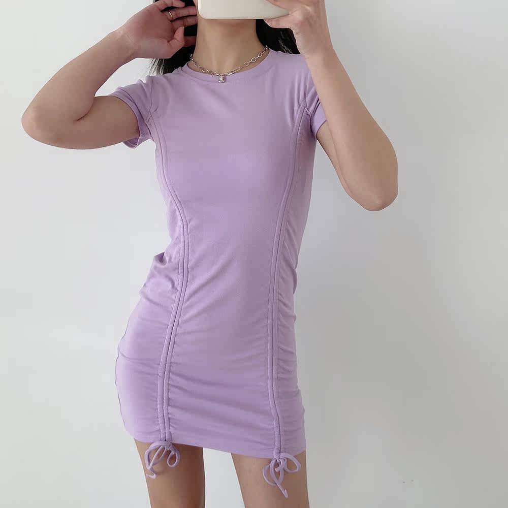 Дизайнерская мини-юбка с круглым воротником, сексуальное платье, на шнурках, короткий рукав, с акцентом на бедрах