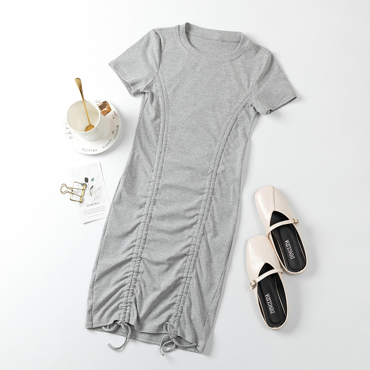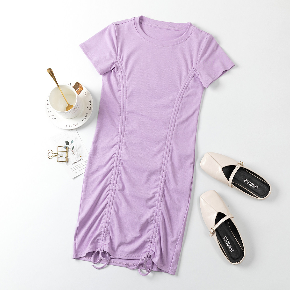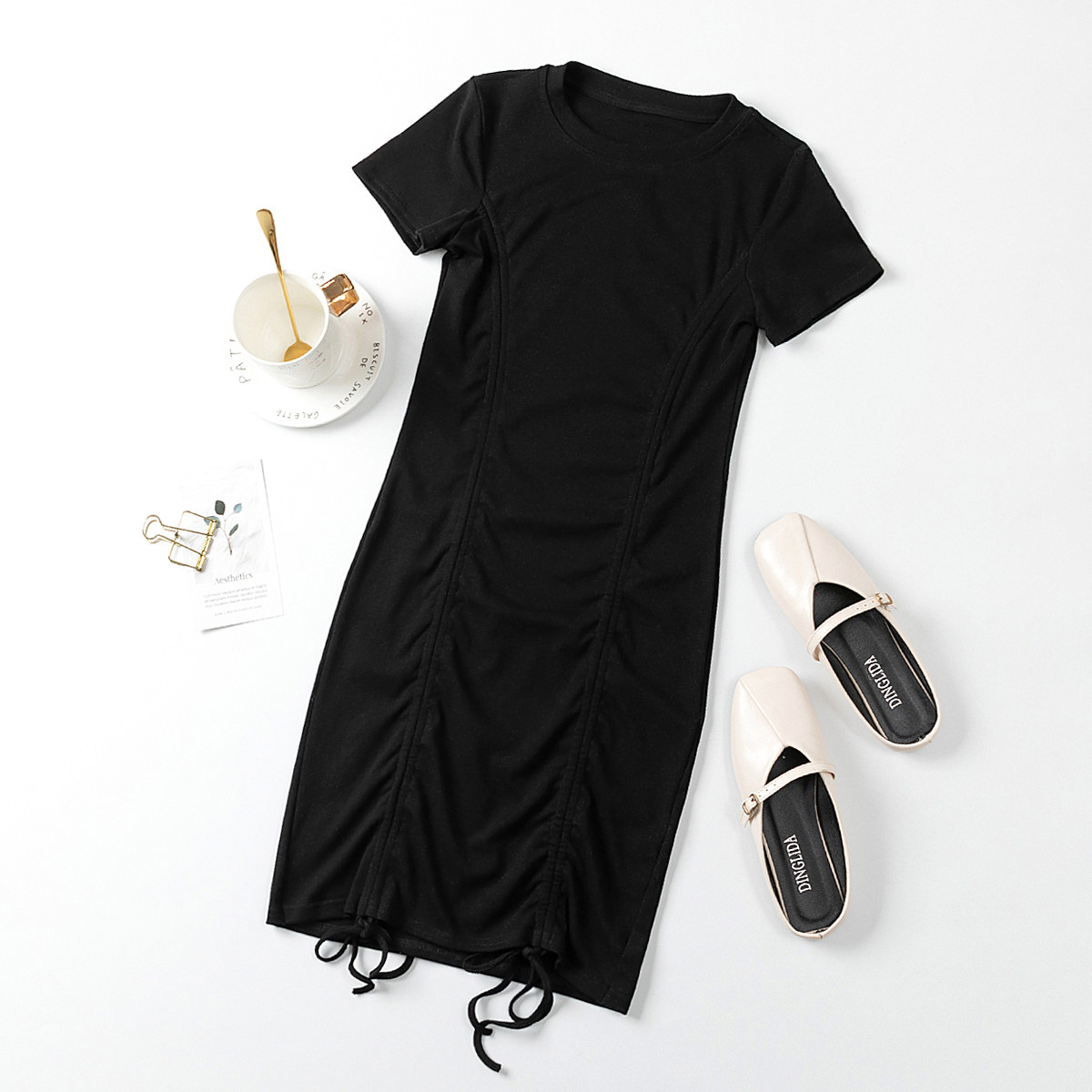 Дизайнерская мини-юбка с круглым воротником, сексуальное платье, на шнурках, короткий рукав, с акцентом на бедрах