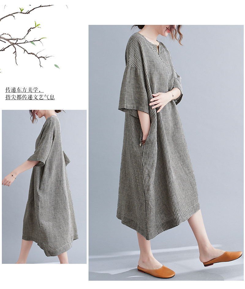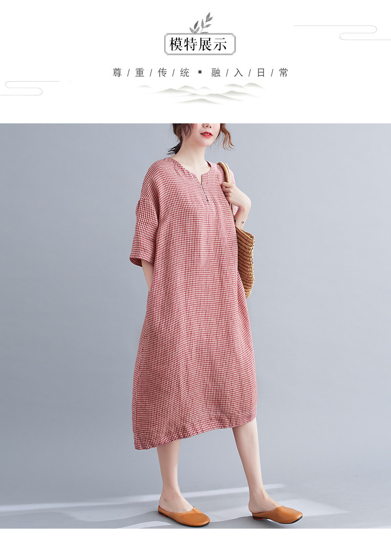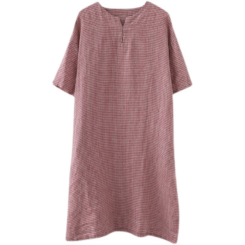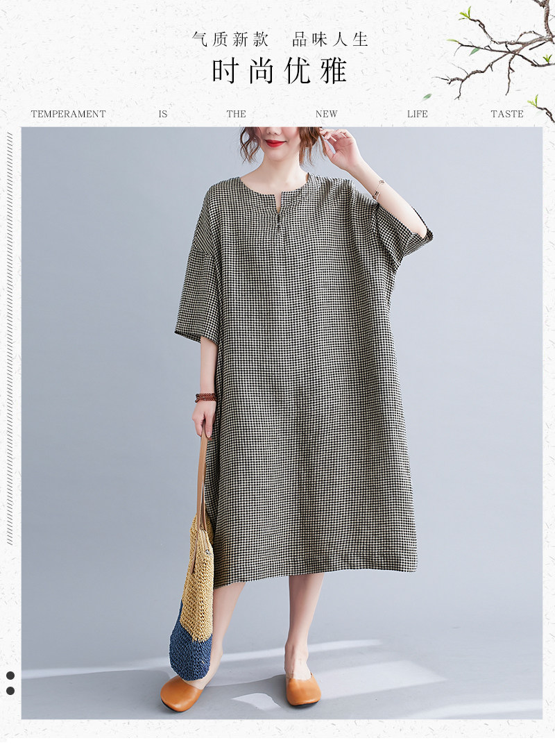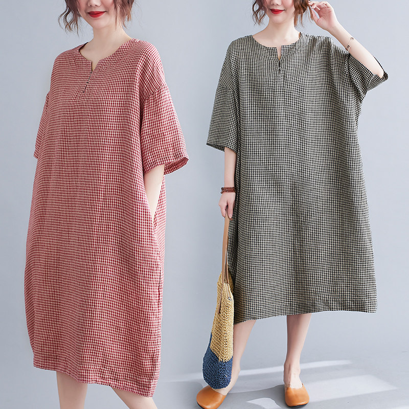 Летняя одежда, длинное платье, подходит для полных девушек, из хлопка и льна, большой размер, короткий рукав, V-образный вырез, А-силуэт