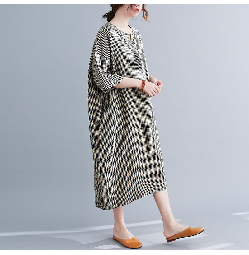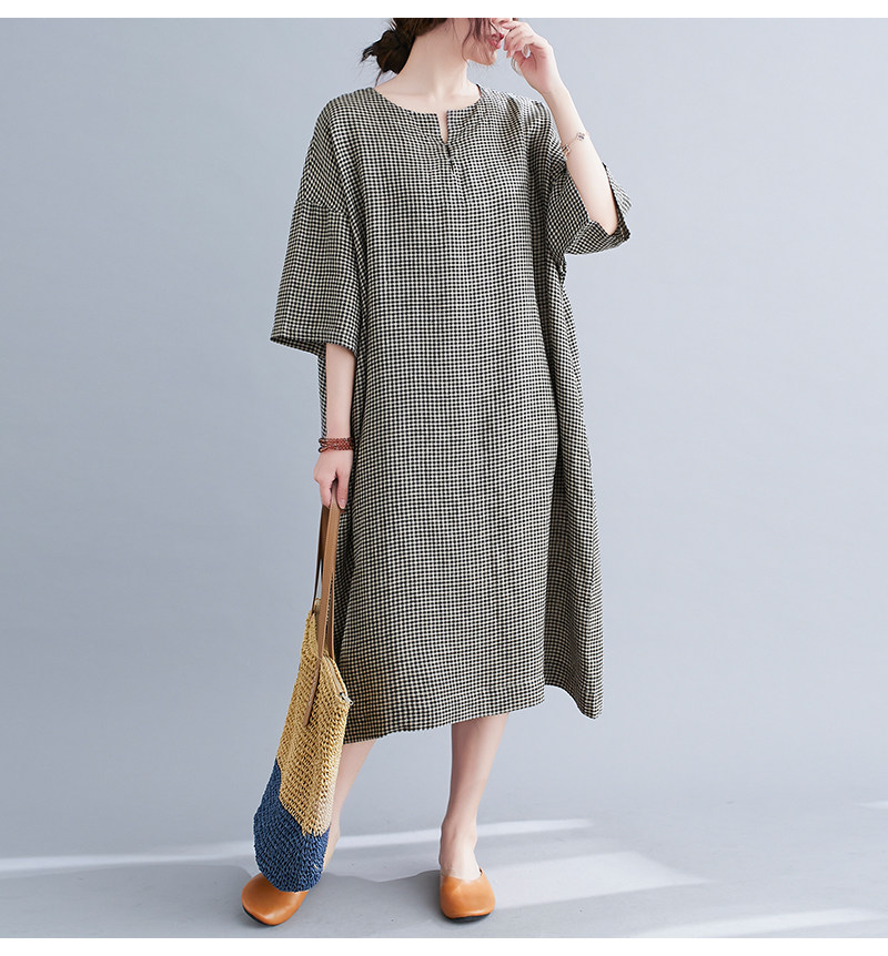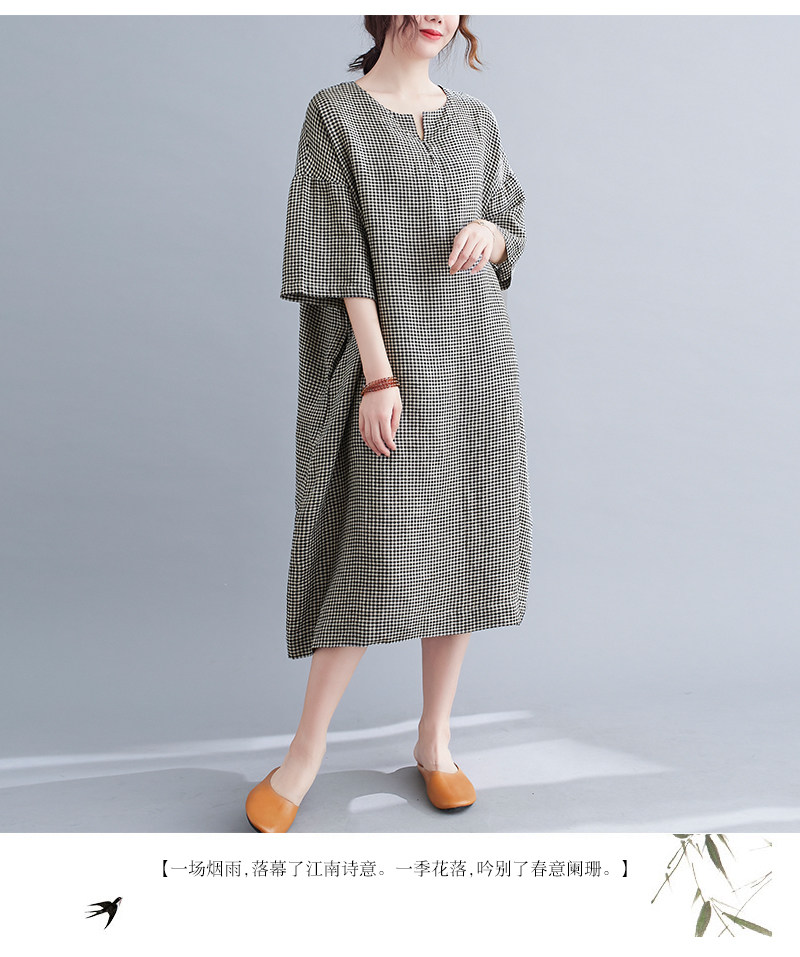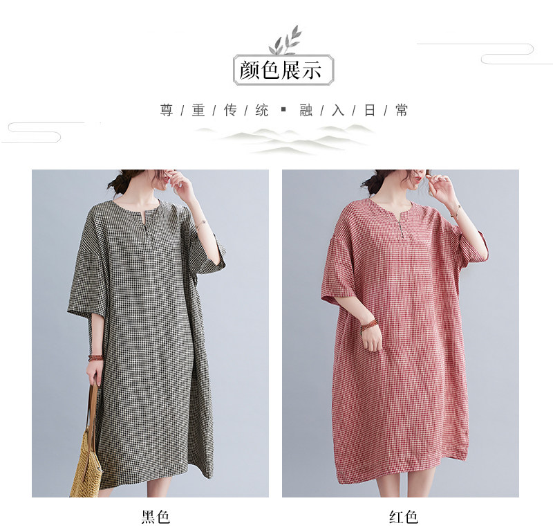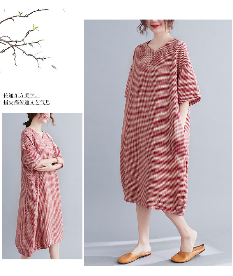 Летняя одежда, длинное платье, подходит для полных девушек, из хлопка и льна, большой размер, короткий рукав, V-образный вырез, А-силуэт