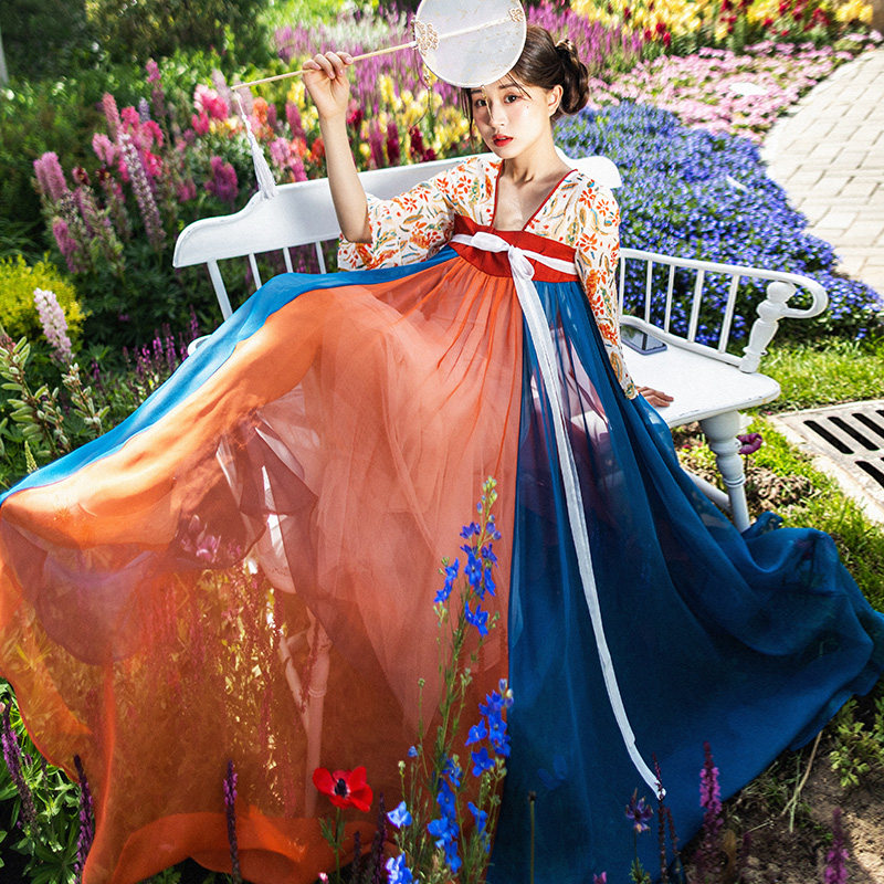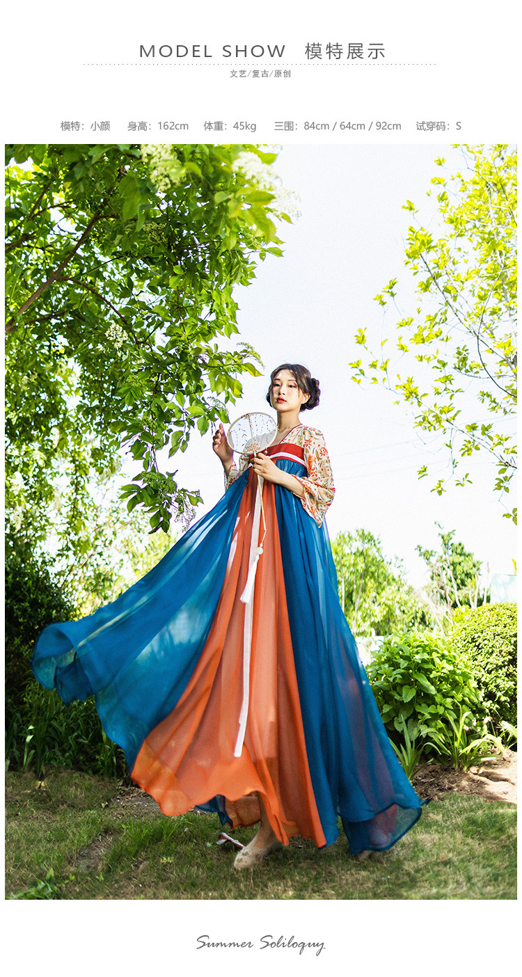 Оригинальное ханьфу, шифоновая летняя длинная юбка, китайский стиль, шифоновое с принтом