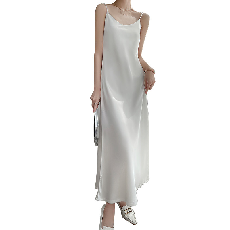 Шелковое платье, базовая белая шелковая длинная юбка, средней длины, V-образный вырез