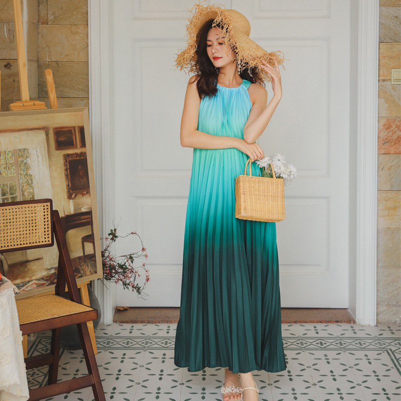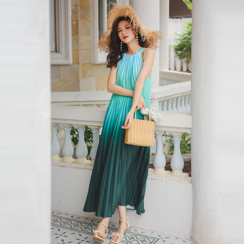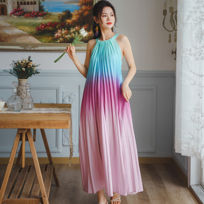 Платье без рукавов, пляжная юбка в складку, радужная длинная юбка, свободный крой, градиент
