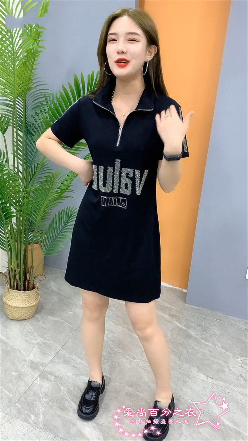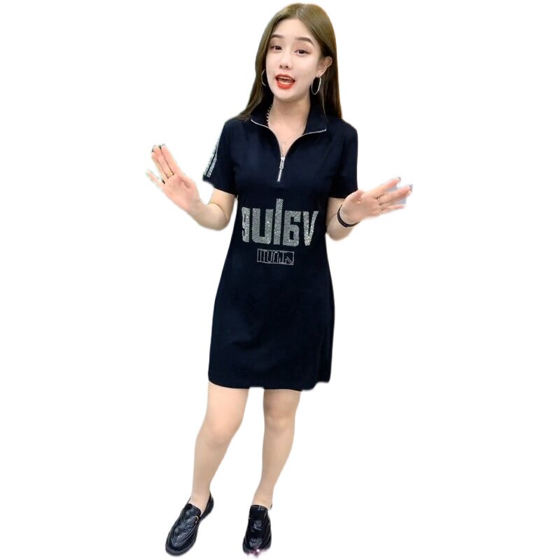 Летнее платье, длинная юбка, в корейском стиле, большой размер, средней длины, популярно в интернете, короткий рукав