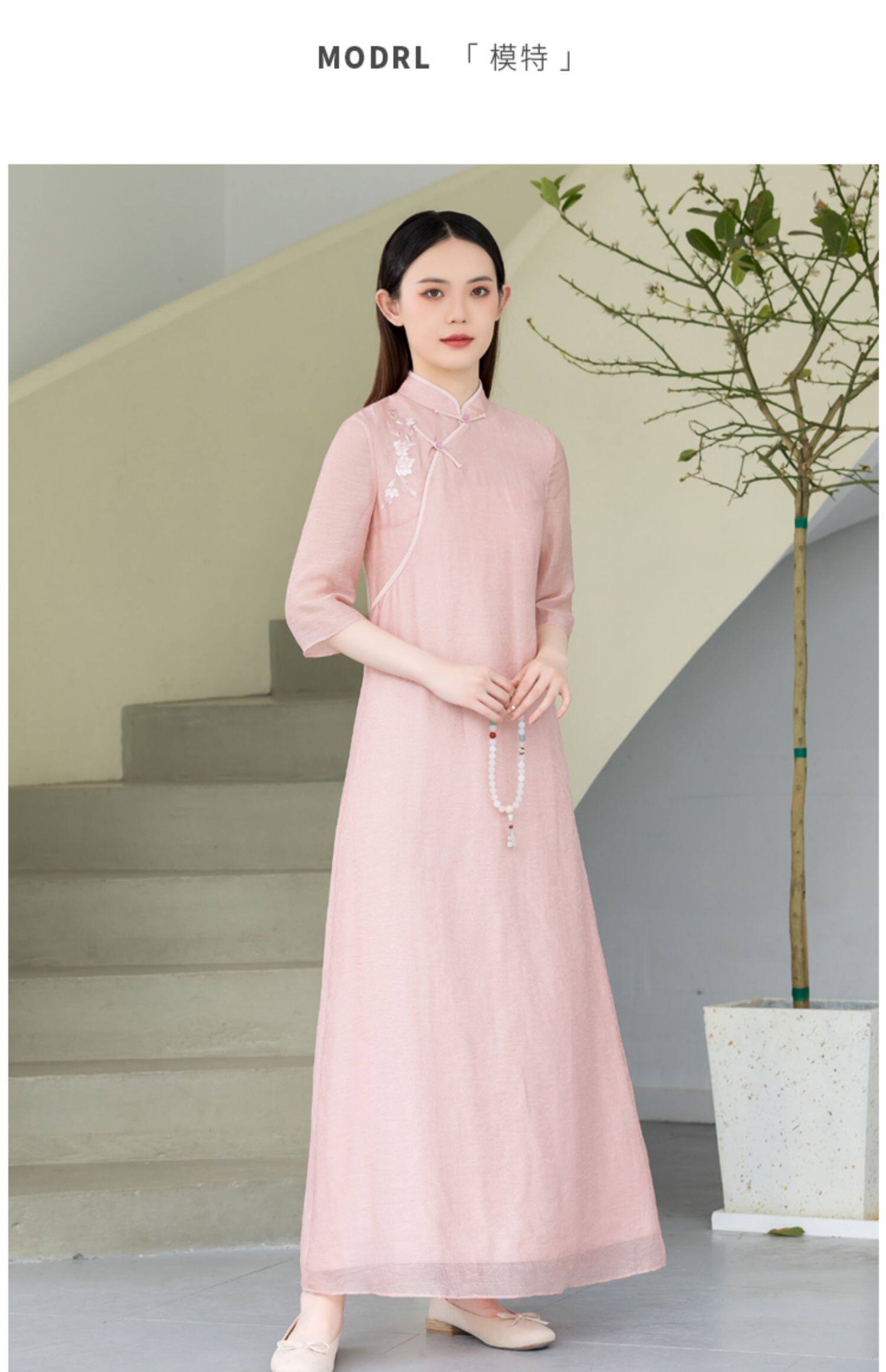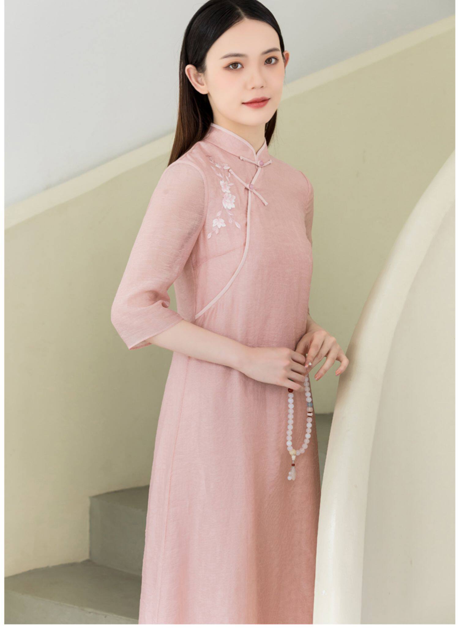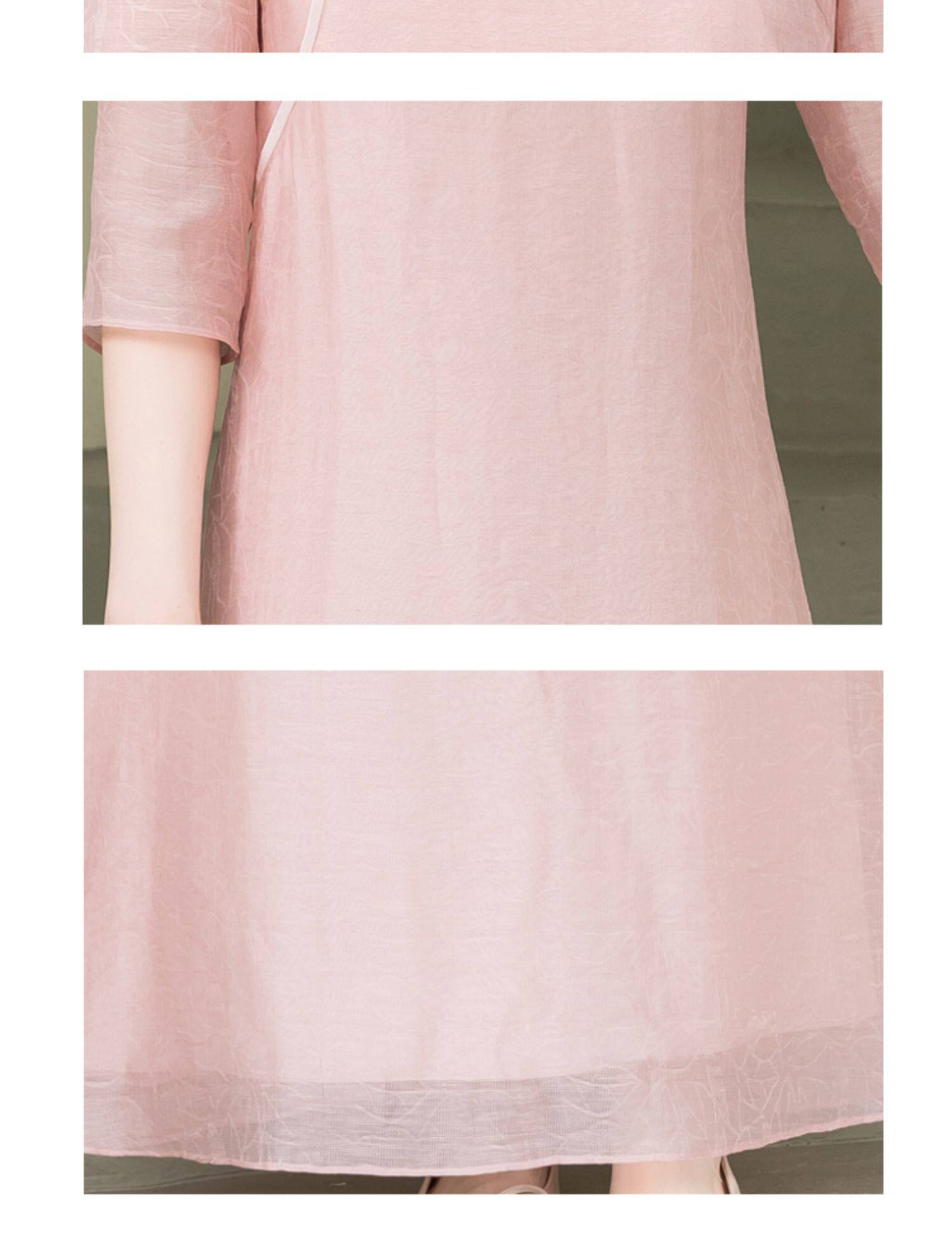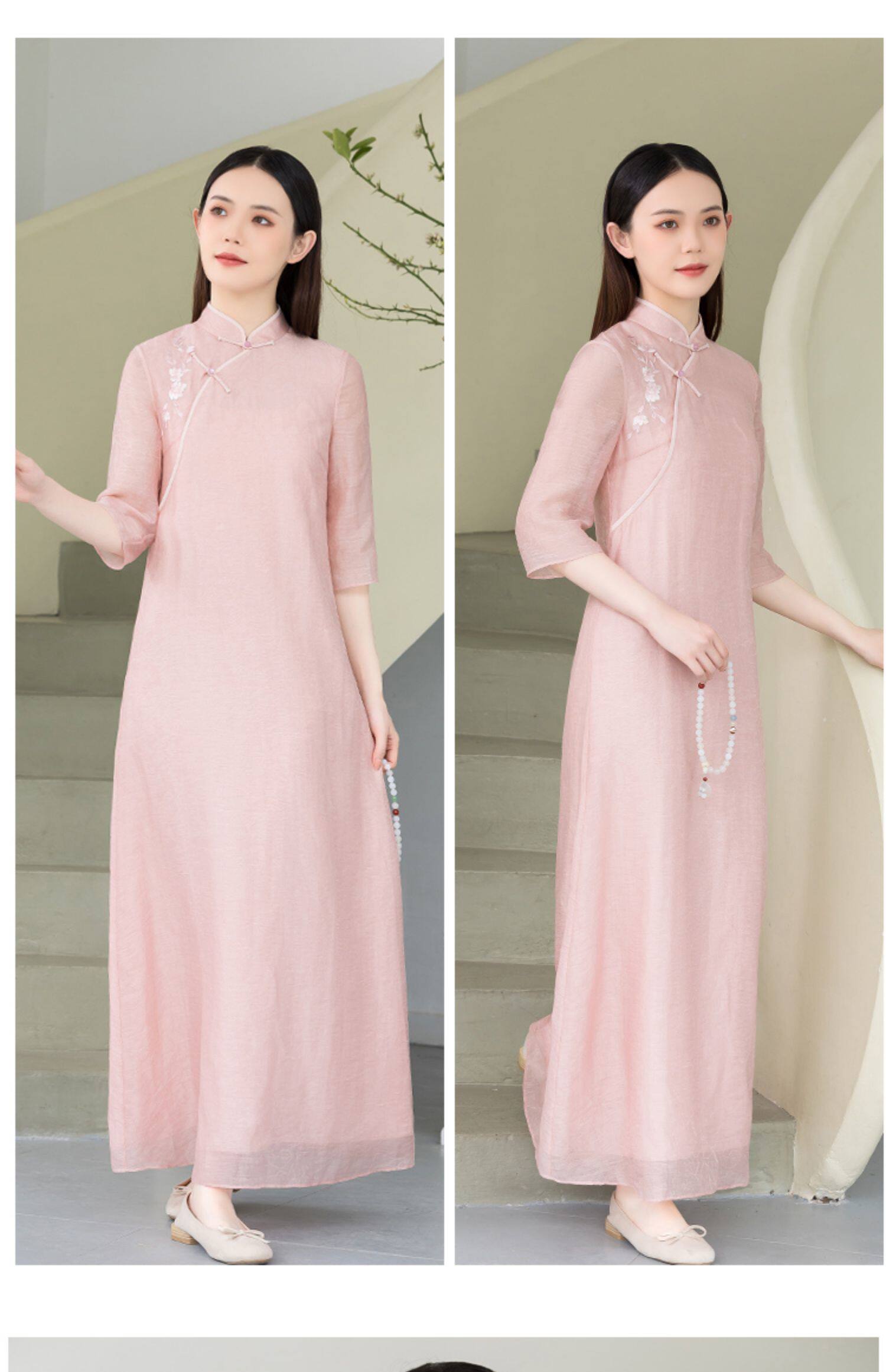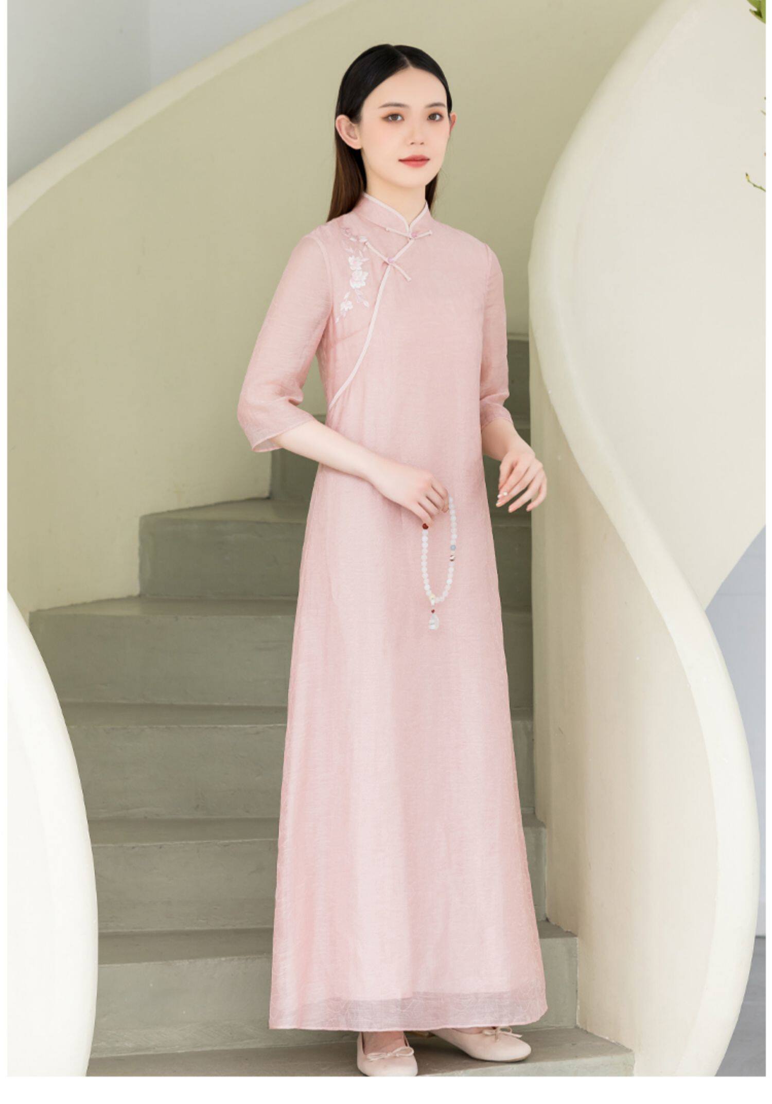 Летнее ципао, платье, ретро юбка, китайский стиль, из хлопка и льна, с вышивкой